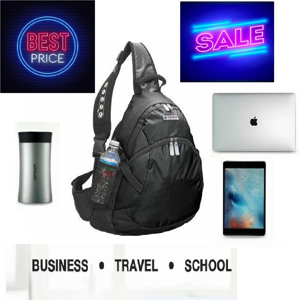 Clearance Sale BLACK Travel Backpack Rucksack Laptop School Bag Girl Women Men A mesmerizing mix of sleek duratex and fierce 840d nylon, this edgy, single-strap pack has undeniable appeal. This mind-blowing bag boasts a 5-button ElekTex Smart Fabric control panel on the back strap, allowing the user to control volume, pause, select or stop music from and iPod. Tune in via headset of your choice through a universal jack also on the strap. Additional bragging rights include a zip compartment in front with plenty of pockets for a phone, PDA, cards, pens, keys and accessories and a discreet, side-zip pocket on the back for a wallet. Dual mesh pockets on the sides and a cozy, padded back panel finish it off. Dimensions: 18.5" x 14" x 4.5" Origin: Imported Special Features: Back to School, Duratex, School, Sling Country of Origin: United States