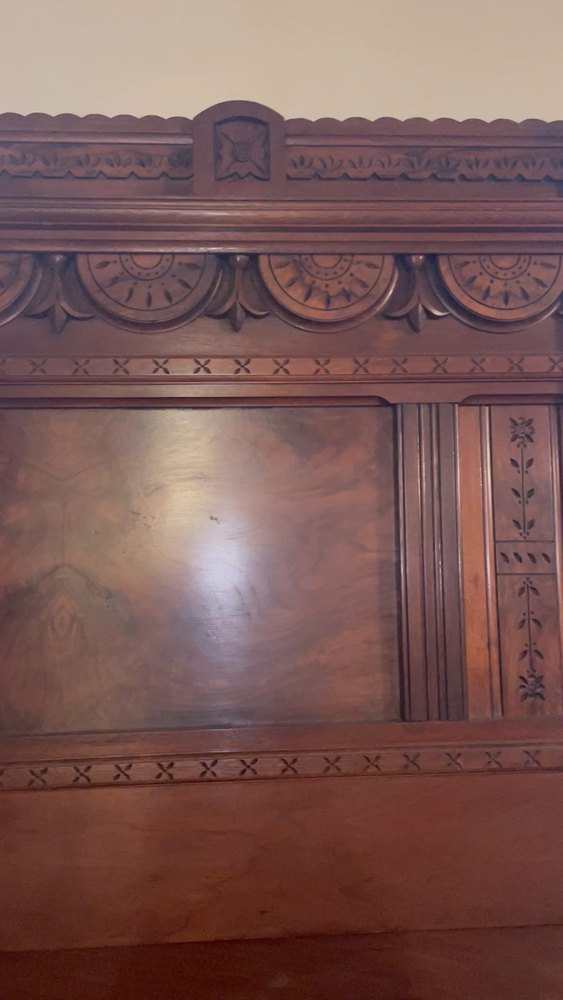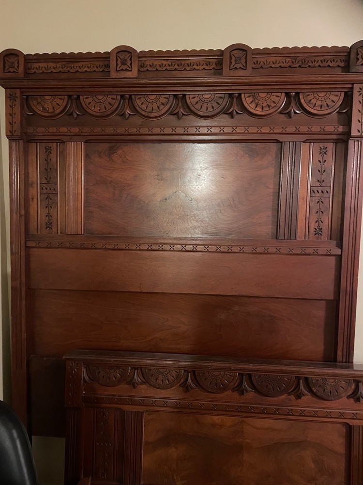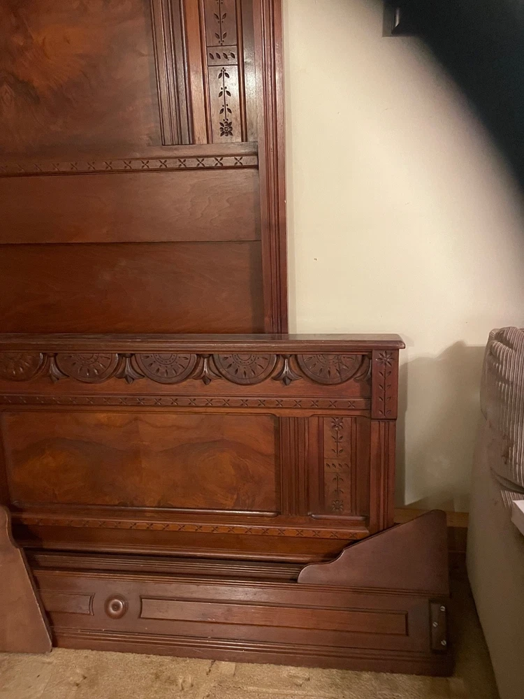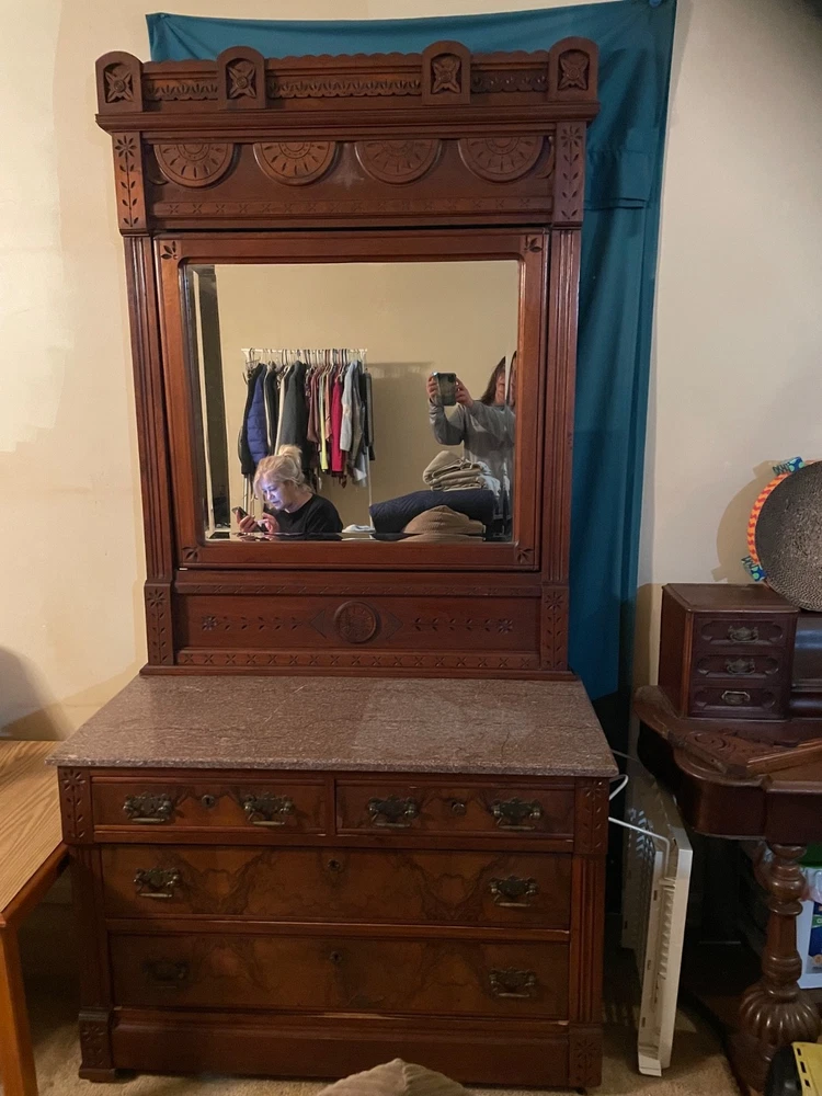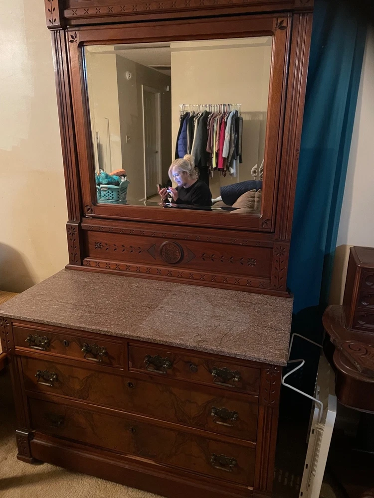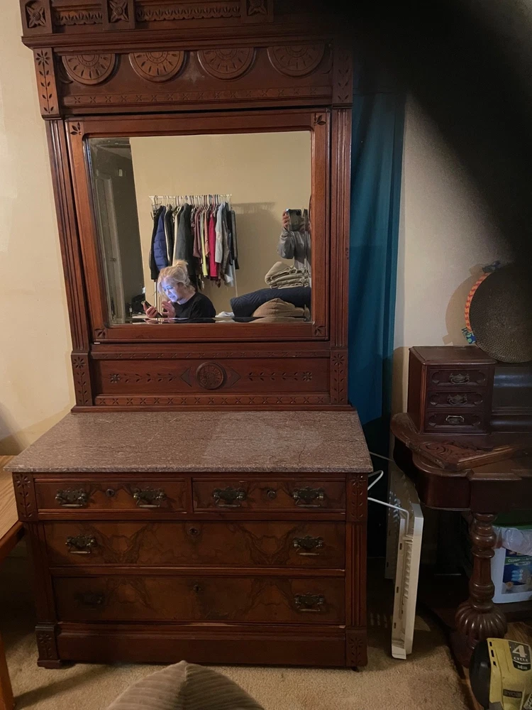antique full size bed eastlake style with dresser with marble top and mirror