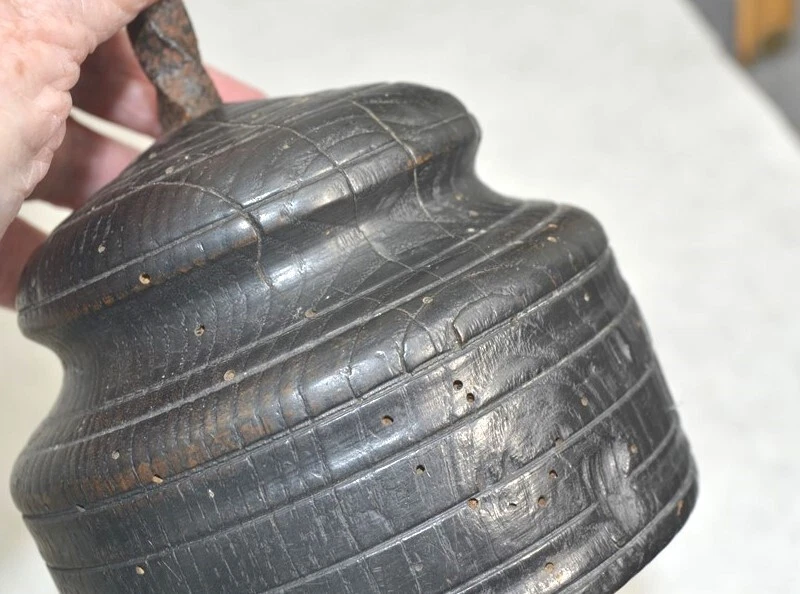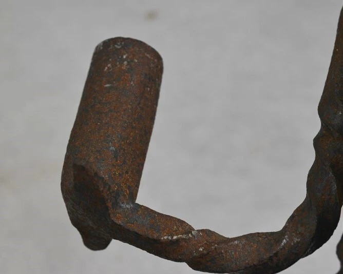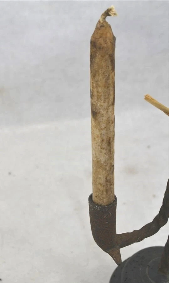 antique rush/candle lamp holder forged 11.5 in. w/candle & rush 18th c original antique table top rush/candle lamp with candle and rush 1. original not reproduction, late 1600s to 1700s 2. all in very good condition 3. nothing broken 4. some slight play in the rush clamp, works well holds rush, just a little play 5. candle is old, not sure if it is tallow 6. rush is old 7. I have not cleaned this, some light surface rust on metal, will brush off 8. bottom wood is hand turned, solid and sits well 9. very nice all original lamp approximate measurements 1. total height 11.5 in. 2. base 4.45 across the bottom x 3.5 high 3. candle holder 1.75 x 5/8 in. opening 4. candle 5.75 long priority or ground advantage shipping and handling in US scroll down for larger photos You may be interested in our other eBay listings . I send a note at the end of the sale with payment information. Payment is expected within 2 days. We ship promptly within 1 day on receipt of payment. All US packages have tracking and are insured. International Buyers We ship international with United States Postal Services. USPS First Class postage and Flat Rate Priority Boxes or Envelopes can now be tracked to some countries . International packages over $100 ship priority or express. Contact us for more information. Import duties, taxes and charges are not included in the item price or shipping charges. These charges are the buyer’s responsibility. Please check with your country’s customs office to determine what these additional costs will be prior to bidding/buying.” . Powered by SixBit's eCommerce Solution