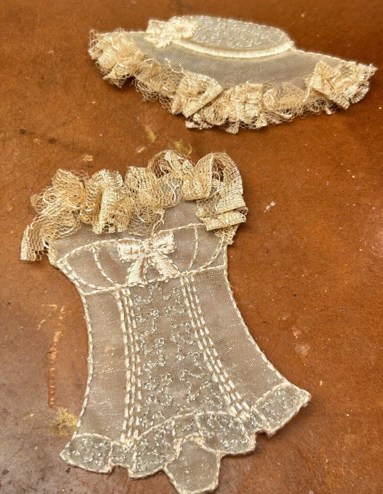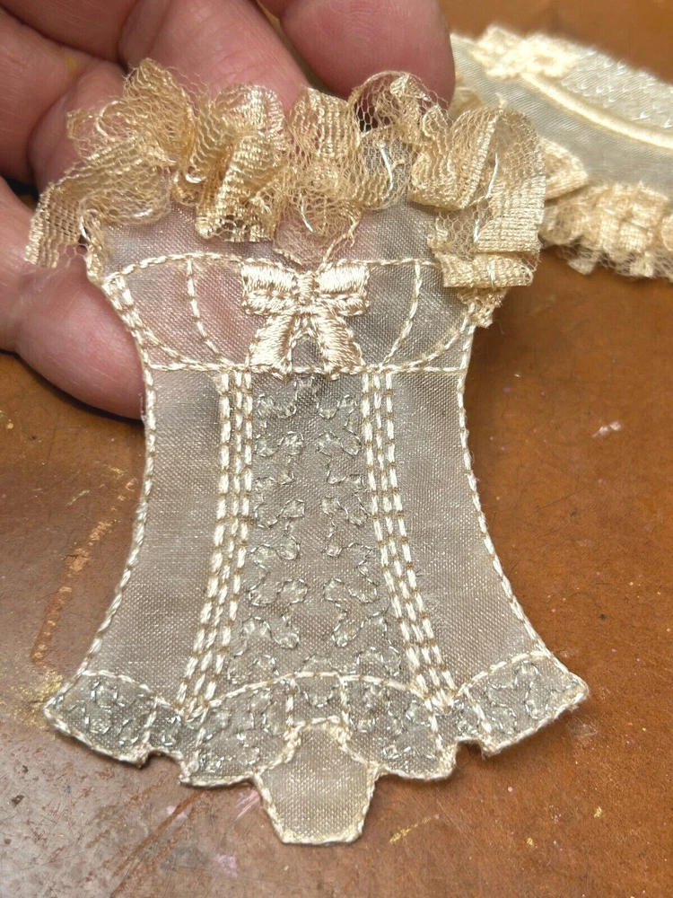 This listing is for a set of 2 Appliques Iron Ons Measures: Corset is 2x3" - Hat is 1.5x3" Corset & Hat made in France Do visit my Ebay store for many more Appliques Also Bridal Ebay Store: trimsandribbons Ebay Seller: trims-n-treasures Instagram: linagallthetrimmings Shipped with USPS First Class Buy More from My Store to Save on Shipping. For combined shipping place items in your cart then request total from top right of cart using a computer. I will then send you an invoice to pay. Feature is not present on mobiles.