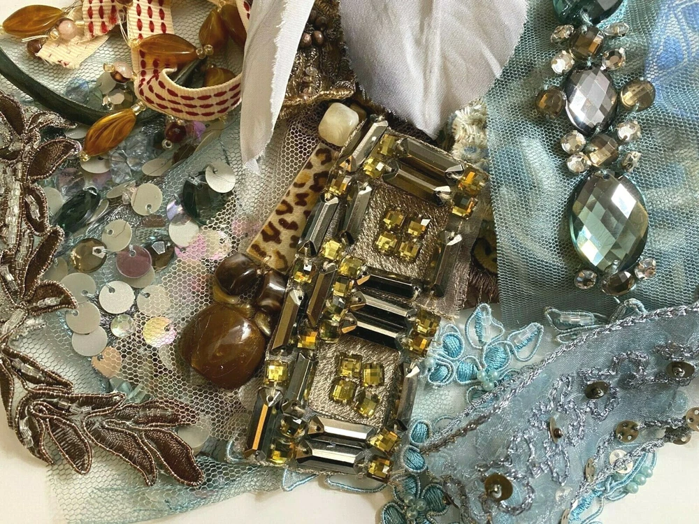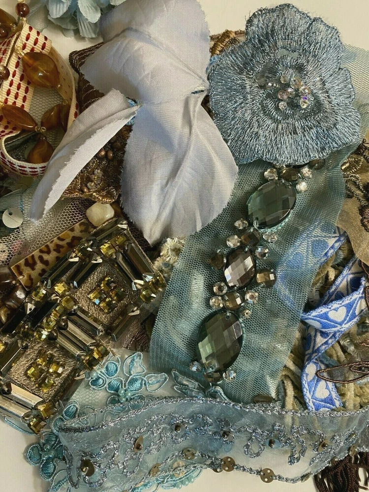 *STUDIO CLEAN UP SALE* FABULOUS BARGAINS! PERFECT FOR SMALL PROJECTS Each Grab Bag contains 18-20 pieces Caramel Blue miscellaneous pieces Do visit my Ebay store for many more GRAB BAGS/BOX n' TREASURES Also Clearance Sale Overstock Ebay Store: trimsandribbons Ebay Seller: trims-n-treasures Instagram: linagallthetrimmings trimsandribbons.com Shipped with USPS First Class Buy More from My Store to Save on Shipping. For combined shipping place items in your cart then request total from top right of cart using a computer. I will then send you an invoice to pay. Feature is not present on mobiles.
