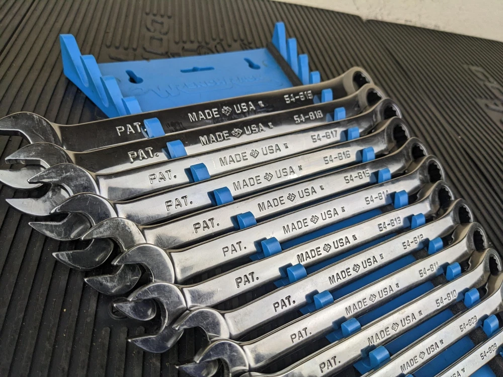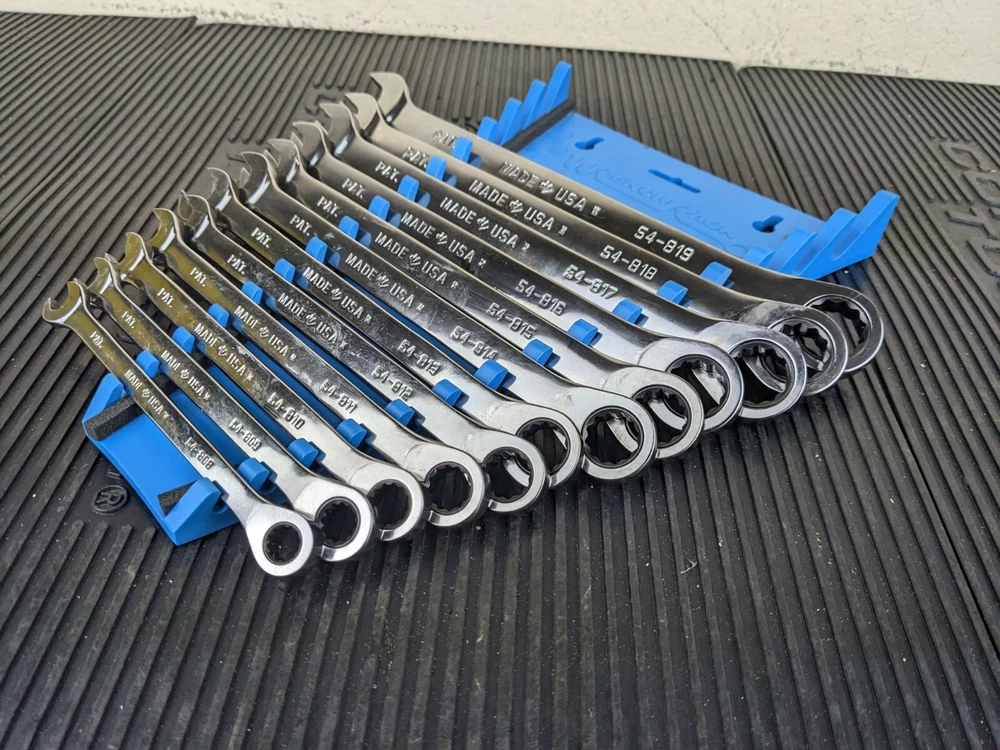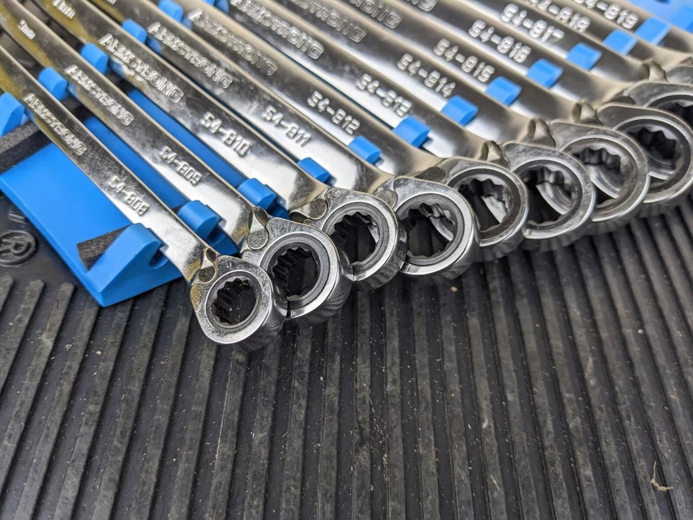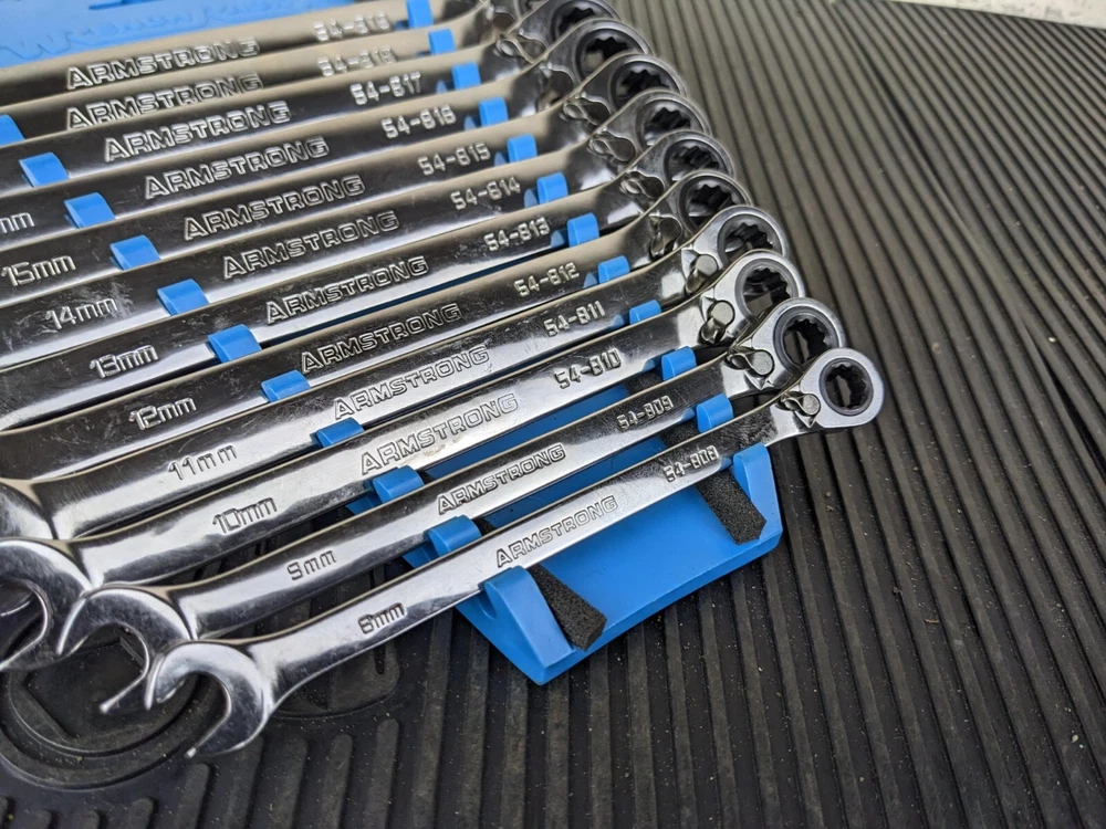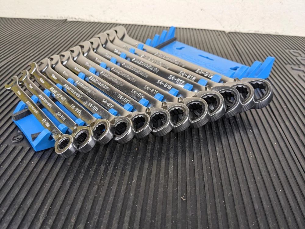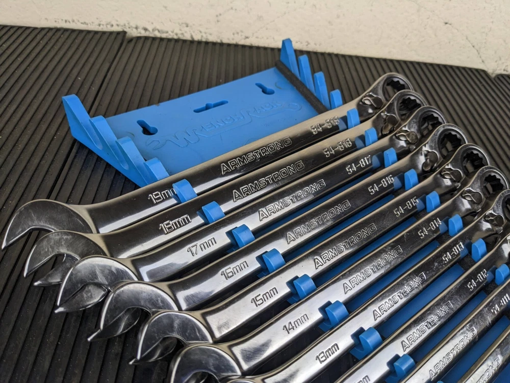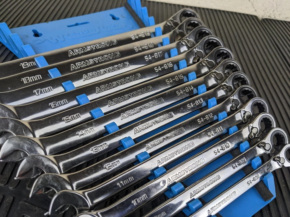 Armstrong Tools USA 12pc Metric Ratcheting Combination Wrench Set 8-19mm Blue wrench rack not included. All ratchet well