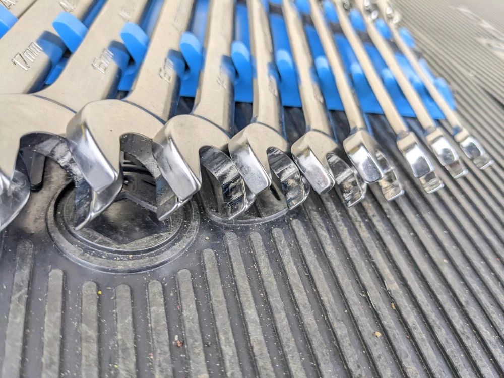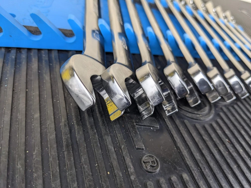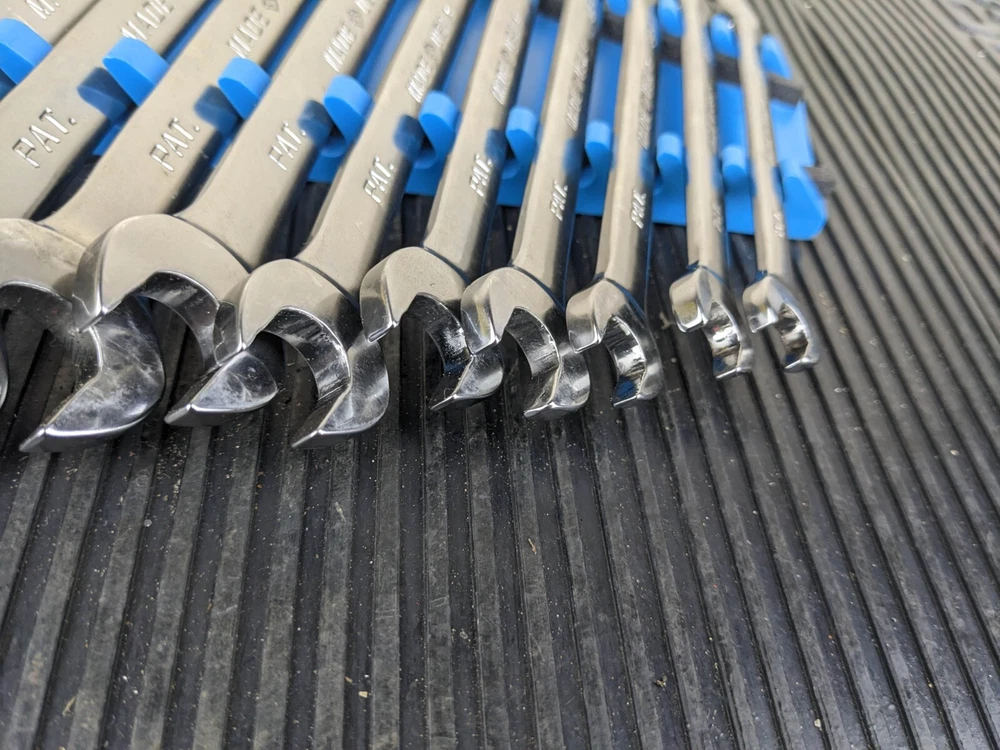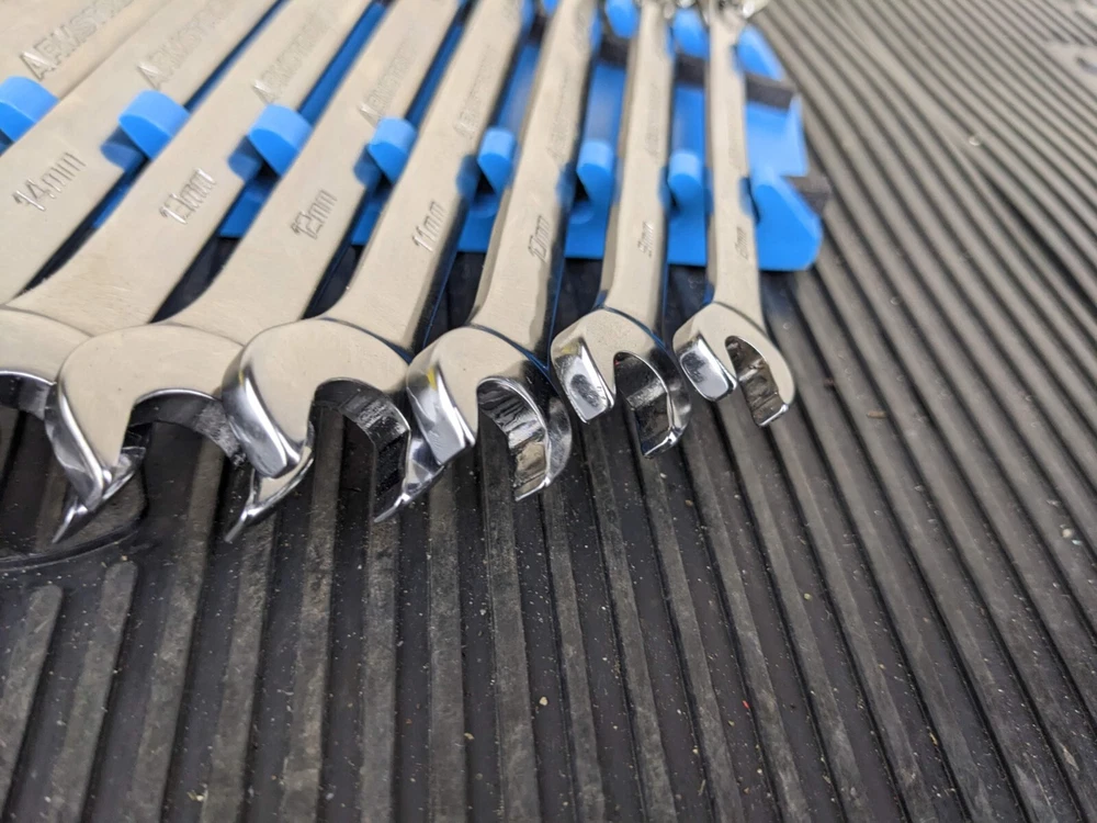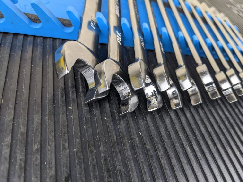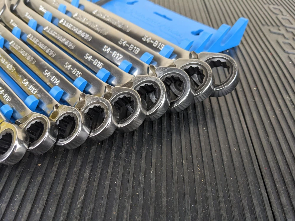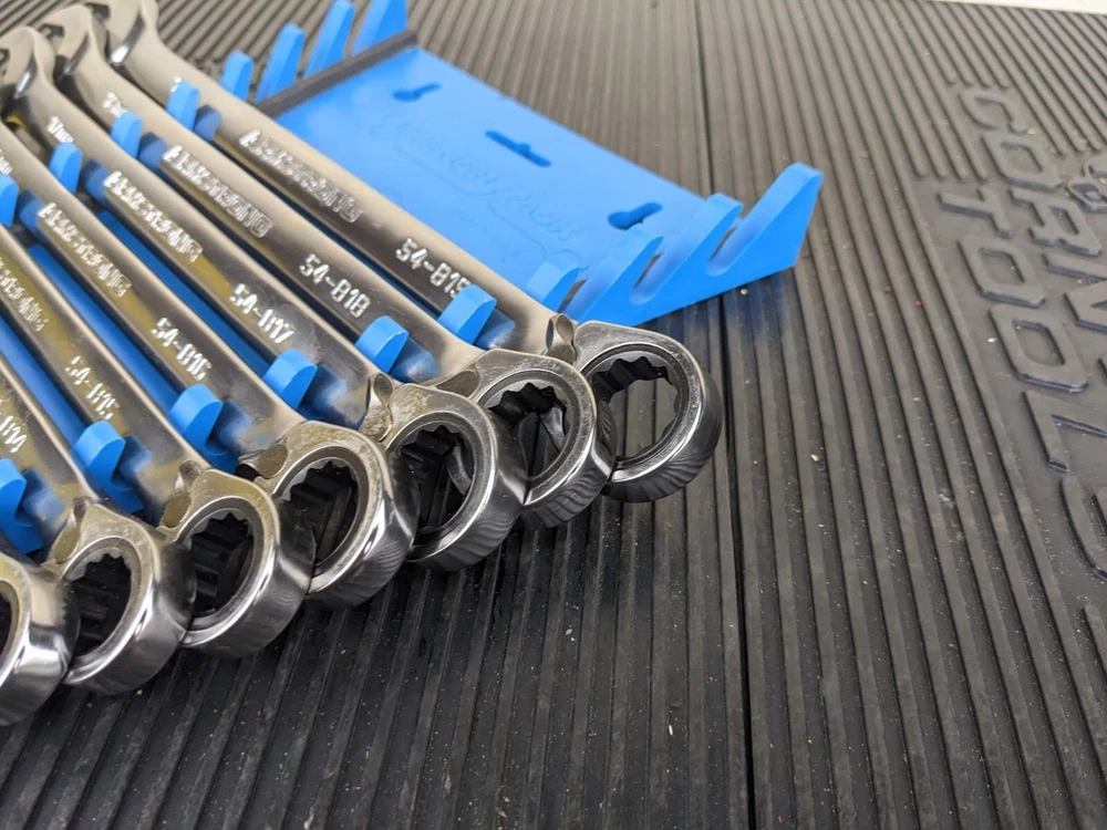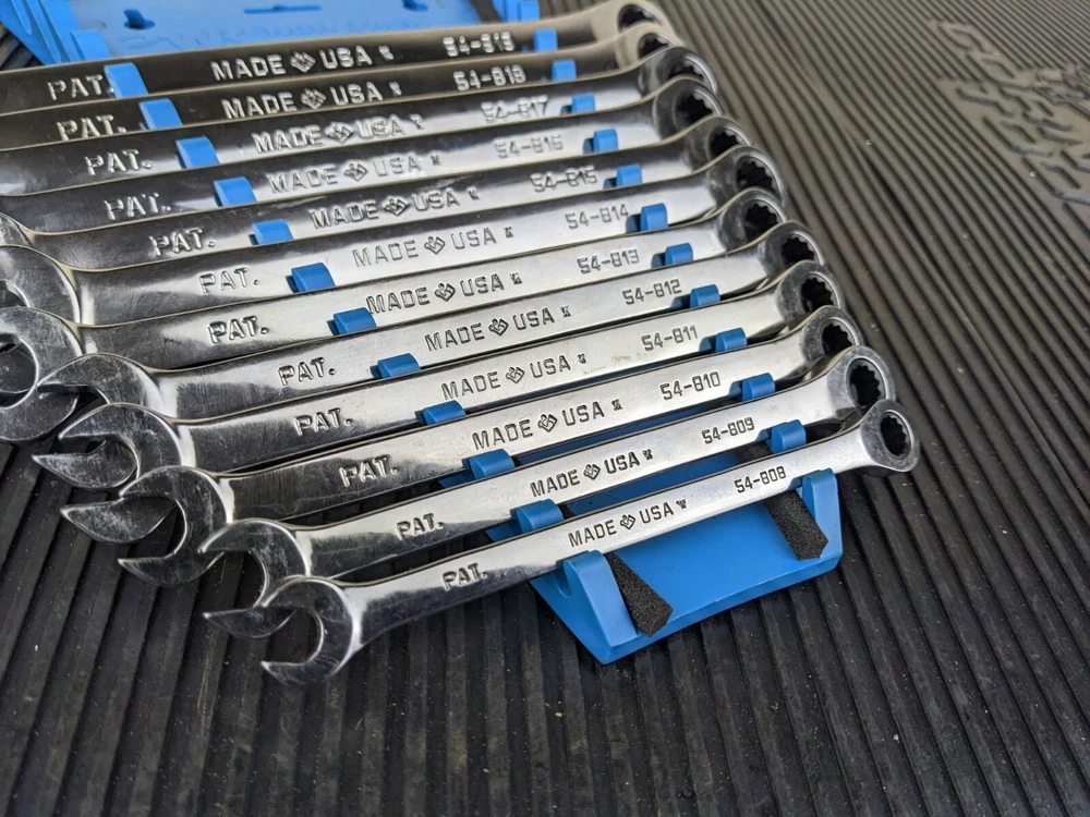 Armstrong Tools USA 12pc Metric Ratcheting Combination Wrench Set 8-19mm Blue wrench rack not included. All ratchet well
