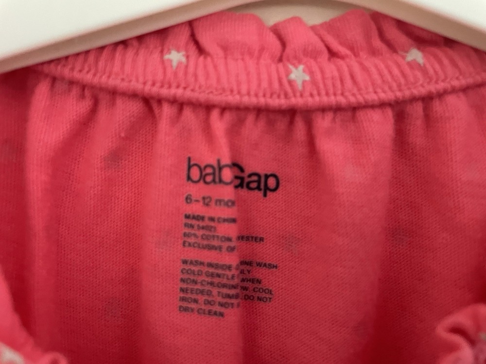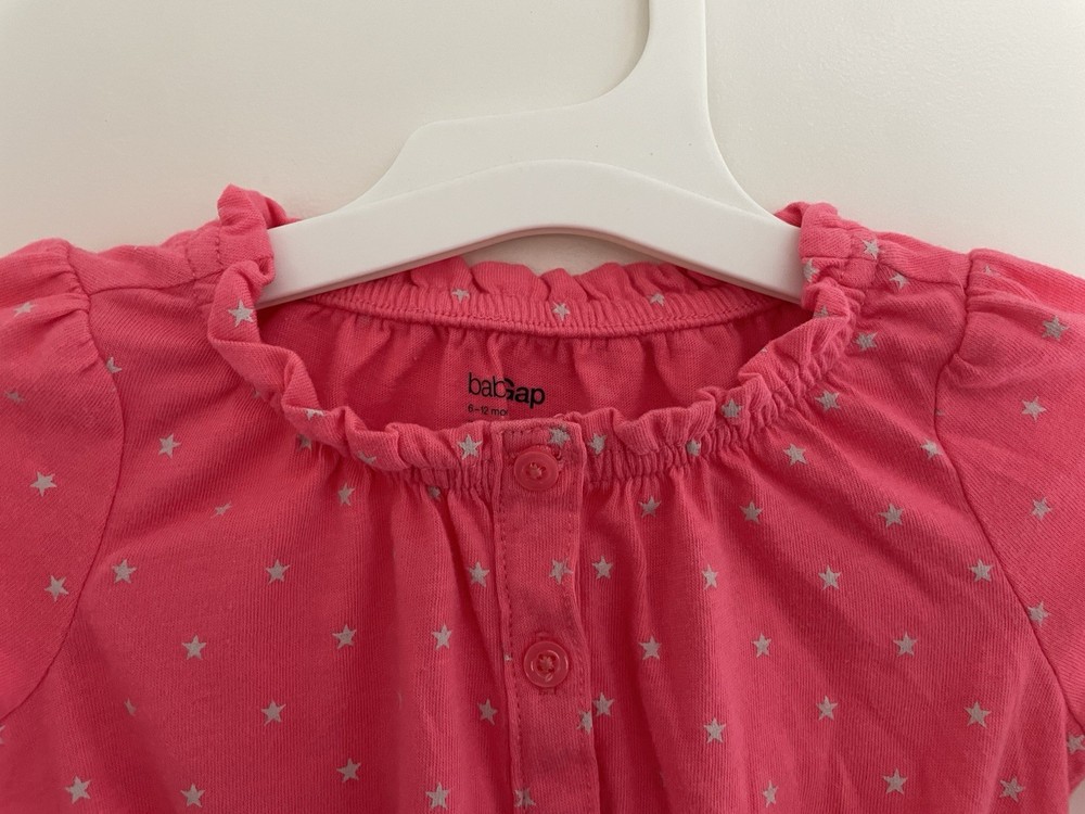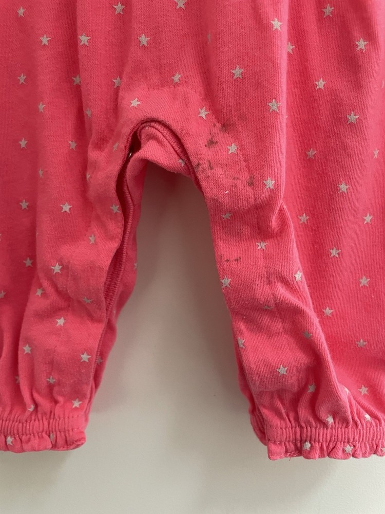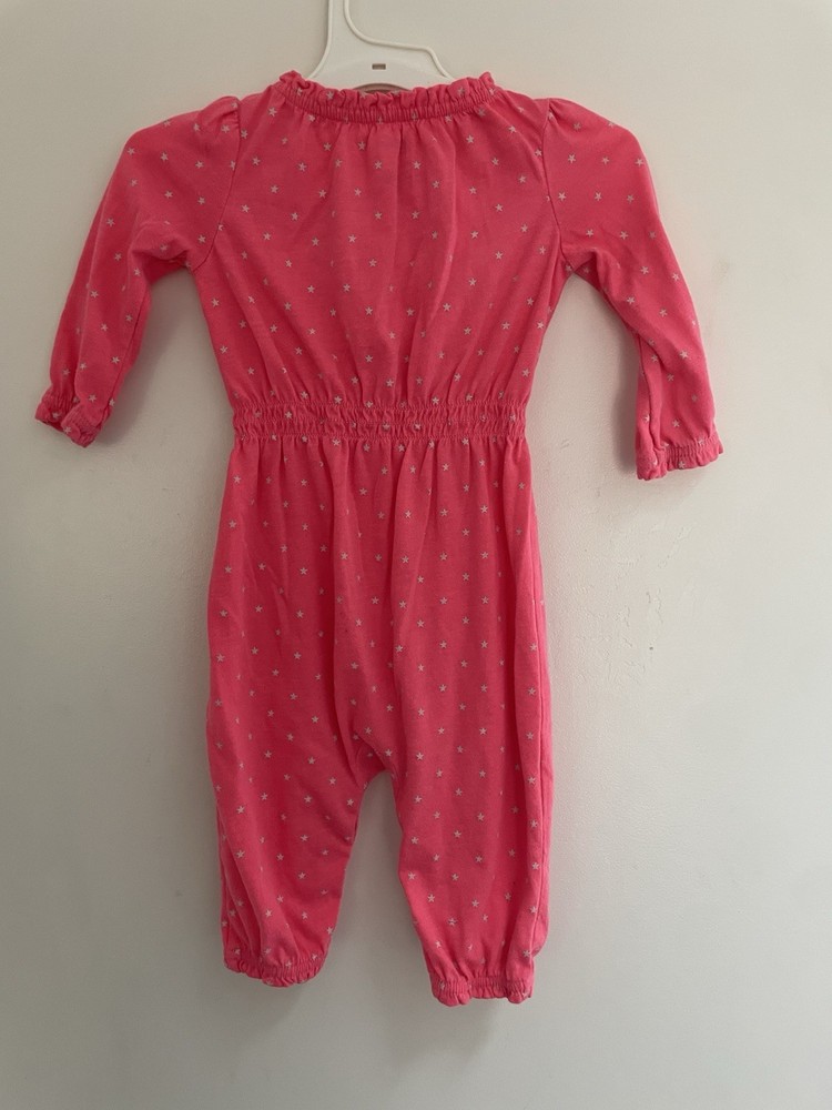 Neckline: Henley Closure: Snap Pattern: Stars Style: Jumpsuit Size: 6-12 Months Fabric Type: Blended Fabric Garment Care: Machine Washable Occasion: Casual Material: 40% polyester, 60% cotton Sleeve Length: Long Sleeve Features: Comfort, Easy Care, Lightweight, Stretch Seller Notes: “In good condition. There are light stains on the bottom. Free of rips.” Season: Fall, Spring, Winter Color: Pink Number of Pieces: 1 Piece Department: Girls Theme: Stars Country of Origin: China Type: One-Piece Brand: Gap