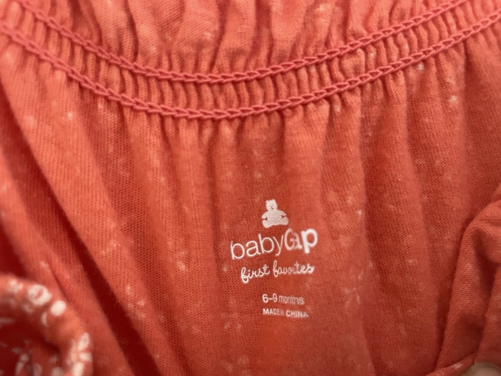 Seller Notes: “In very good condition. Free of rips or stains.” Season: Fall, Spring, Summer Brand: Gap Style: Romper Department: Girls Country of Origin: China Closure: Snap Theme: Flower Material: 100% Cotton Type: One-Piece Accents: Bow Color: Miami Coral Garment Care: Machine Washable Sleeve Length: Sleeveless Occasion: Casual Pattern: Floral Size: 6-9 Months Number of Pieces: 1 Piece Features: Comfort, Easy Care, Lightweight, Smocked, Stretch