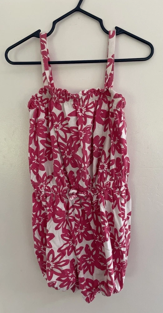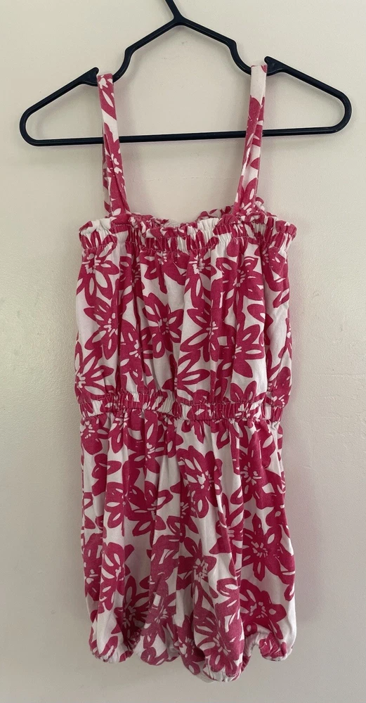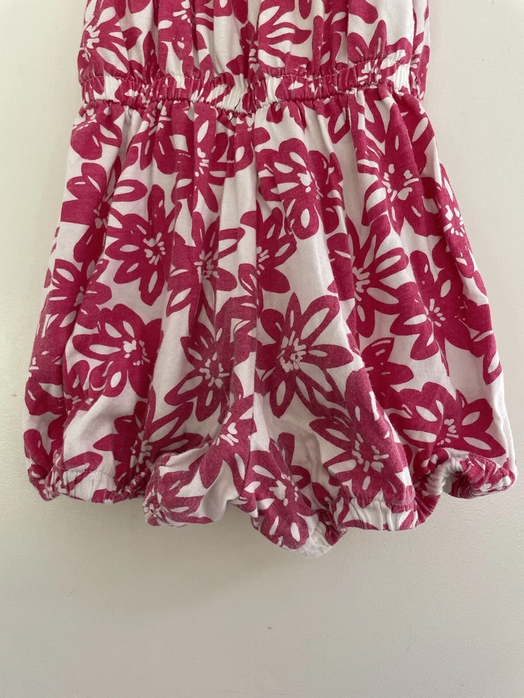 baby Gap Kids Girls Pink Floral Cinched Waist Sleeveless Tank Romper White 5 Yrs