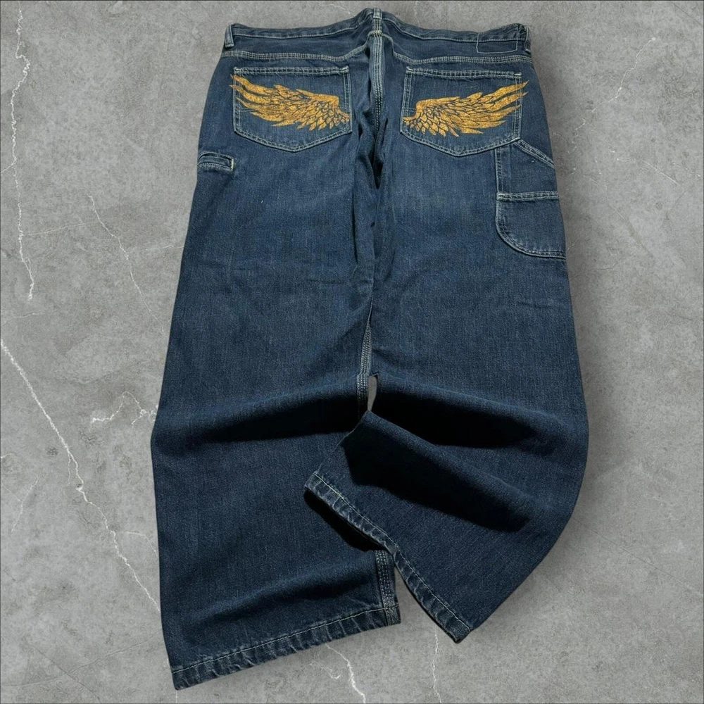 baggy carpenter jnco style wide leg y2k skater jeans ⚫️ measures to 40x30 / 9.5” LEG OPENING ⚫️ NOT JNCO‼️‼️ ⚫️ baggy and wide around thighs and legs ⚫️Condition is as pictured. There may be some marks or distressing not shown so it’s best to examine the pics closely to get an idea of the condition. All items are preloved/thrifted.
