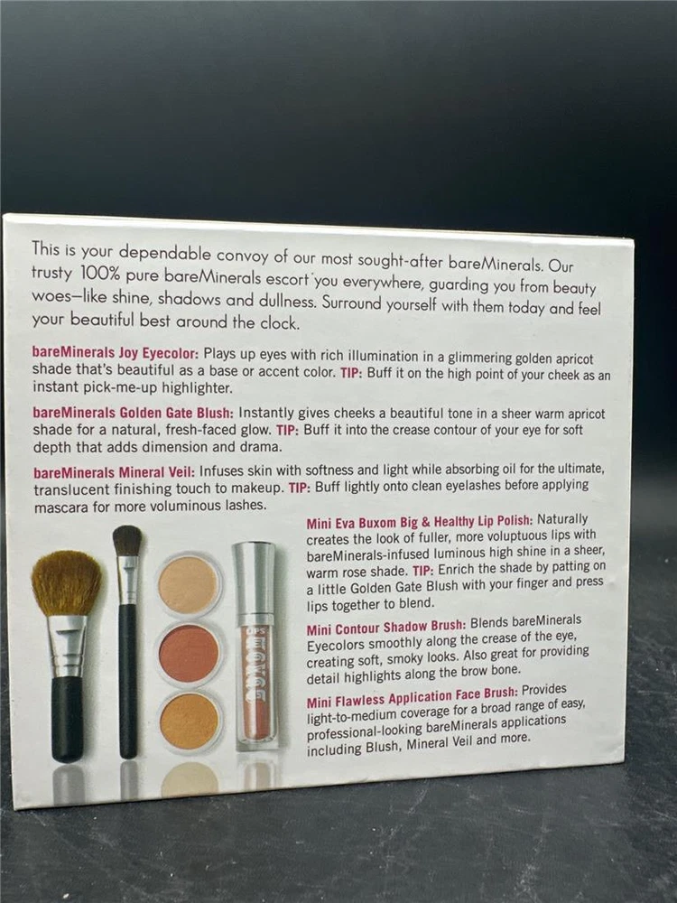 bareMinerals GO BARE You Know You Want To 6 Piece Collection NEW bareMinerals GO BARE You Know You Want To 6 Piece Collection NEW Click images to enlarge Description FOR YOUR BIDDING CONSIDERATION: bareMinerals Go Bare You Know You Want To 6 Piece Collection This collection set includes: bareMinerals Joy Eyecolor bareMinerals Golden Gate Blush bareMinerals Mineral Veil Mini Eva Buxom Big & Healthy Lip Polish Mini Contour Shadow Brush Mini Flawless Appliction Face Brush Check out my other listings for more bareMinerals Make Up Sets! I purchase my items from local estates, auctions, warehouse overstock and cannot confirm anything about them or if they come from smoke free/pet free homes. I try my best to represent items to the best of my knowledge. Used items are never as good as NEW. Do not purchase if you are not willing to accept less than perfect. Please read the description thoroughly and review pictures before committing to buy. Thank you! ALASKA - HAWAII - PR - APO - ADDITIONAL CHARGES MAY APPLY SHIPMENTS GO OUT MONDAY-FRIDAY WEEKEND SALES SHIP MONDAY OR TUESDAY Get images that make Supersized seem small. Showcase your items with Auctiva's Listing Templates! THE simple solution for eBay sellers. Track Page Views With Auctiva's Counter
