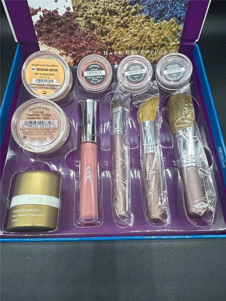bareMinerals THE PERFECT 10 Gift Set Eyecolor Blush Veil Brushes Foundation Lip bareMinerals THE PERFECT 10 Gift Set Eyecolor Blush Veil Brushes Foundation Lip Click images to enlarge Description FOR YOUR BIDDING CONSIDERATION: bareMinerals The Perfect 10 Gift Set Collection 10 Piece Set NEW and Sealed This gift set included: 30-Day RareMinerals Skin Revival Treatment baremMinerals SPF 15 Foundation bareMinerals Hero Eyecolor bareMinerals Idol Eyecolor bareMinerals Courage Blush Tinted Feather Light Mineral Veil Zena Boxim Big & Healthy Lip Polish Flawless Application Face Brush Full Tapered Shadow Brush Angeled Blush Brush See pictures for sizes of containers. Check out my other listings for more bareMinerals Make Up Sets! I purchase my items from local estates, auctions, warehouse overstock and cannot confirm anything about them or if they come from smoke free/pet free homes. I try my best to represent items to the best of my knowledge. Used items are never as good as NEW. Do not purchase if you are not willing to accept less than perfect. Please read the description thoroughly and review pictures before committing to buy. Thank you! ALASKA - HAWAII - PR - APO - ADDITIONAL CHARGES MAY APPLY SHIPMENTS GO OUT MONDAY-FRIDAY WEEKEND SALES SHIP MONDAY OR TUESDAY Get images that make Supersized seem small. Showcase your items with Auctiva's Listing Templates! THE simple solution for eBay sellers. Track Page Views With Auctiva's Counter