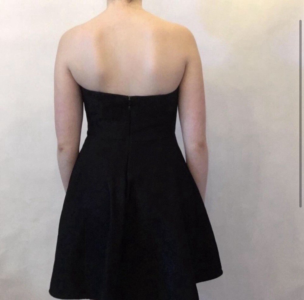 This black strapless dress is a stylish addition to any woman's wardrobe. Made in a size XS, this mini dress features a flattering silhouette and a classic black color that can be easily dressed up or down. The strapless design adds a touch of elegance, while the short length makes it perfect for a night out or special occasion. Pair it with your favorite heels and accessories for a chic look that will turn heads wherever you go.