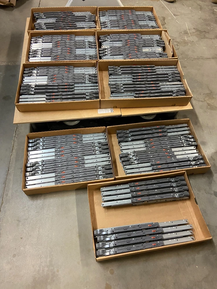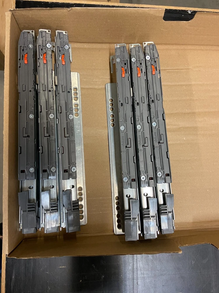 Blum LEGRABOX Drawer Slides – 20" & 14" – Soft Close, Full Extension – Gently Used Product Details: Brand: Blum Product Line: LEGRABOX Model Numbers & Sizes: 52 Pairs – 750.500-02.07 (20" Length) 3 Pairs – 750.350-02.07 (14" Length) Features: Soft-close, full-extension slides Condition: Gently used – fully functional with minor cosmetic signs of wear Total Quantity Available: 55 Pairs ⚠️ Important Note: ➡️ These are only the drawer slides. You will need to purchase compatible Blum LEGRABOX drawer boxes separately to complete the system. Description: Upgrade your cabinetry with these premium Blum LEGRABOX drawer slides , known for their soft-close feature, full-extension design, and smooth operation . These slides provide a luxury drawer experience , perfect for kitchen cabinets, office furniture, and custom storage solutions. These slides were lightly used and remain in excellent working condition . Some minor surface wear may be present, but functionality is 100% intact . Why Choose Blum LEGRABOX Slides? ✅ Soft Close Mechanism – Ensures quiet, smooth drawer closing ✅ Full Extension – Maximizes storage accessibility ✅ Premium Blum Quality – Durable and built to last What’s Included: 20" Blum LEGRABOX drawer slides (750.500-02.07) – Sold in sets of 6 pairs 18" Blum LEGRABOX drawer slides (750.350-02.07) – Only 3 pairs available ❌ No LEGRABOX drawer boxes or mounting hardware included Pricing & Purchase Options: Sold in sets of 6 pairs Buy the entire lot (all 55 pairs) for a bulk discount! Message for bundle pricing Shipping & Handling: Ships within 1-2 business days Securely packaged for safe delivery Bulk orders welcome! Returns & Warranty: Sold as-is with no manufacturer warranty 📦 Upgrade your drawers with premium Blum LEGRABOX slides – Order today!