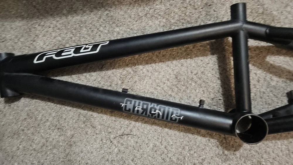 2004 Felt Chronic Team Edition BMX frame. 20.5" Top Tube. 1 1/8" Head tube American BB 14mm dropouts. Welded Gyro/Detangler mounts