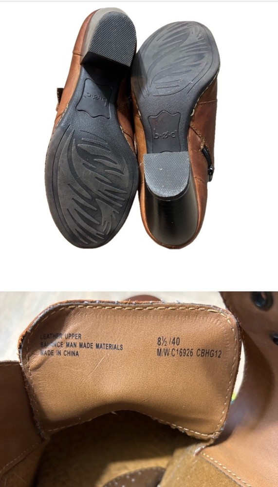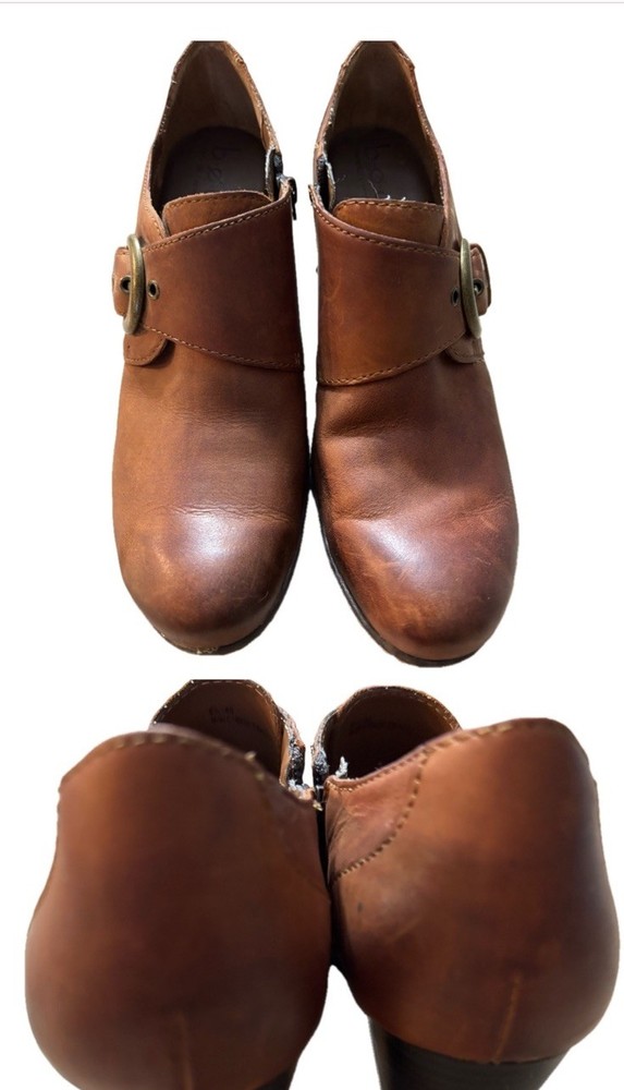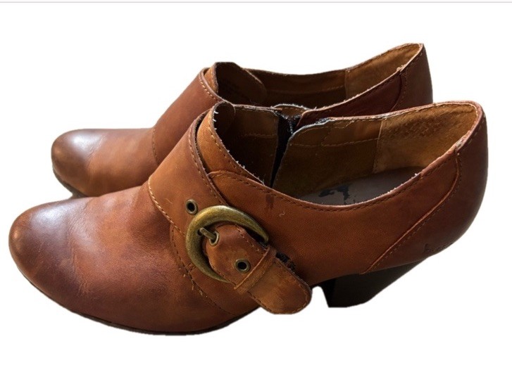 These b.o.c. heels feature a rich brown leather finish, offering a classic and sophisticated look. The shoes are designed with a rounded toe and a 3 inch stacked heel, providing both style and comfort. #D