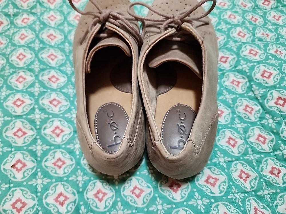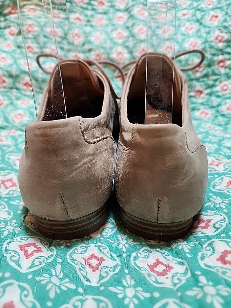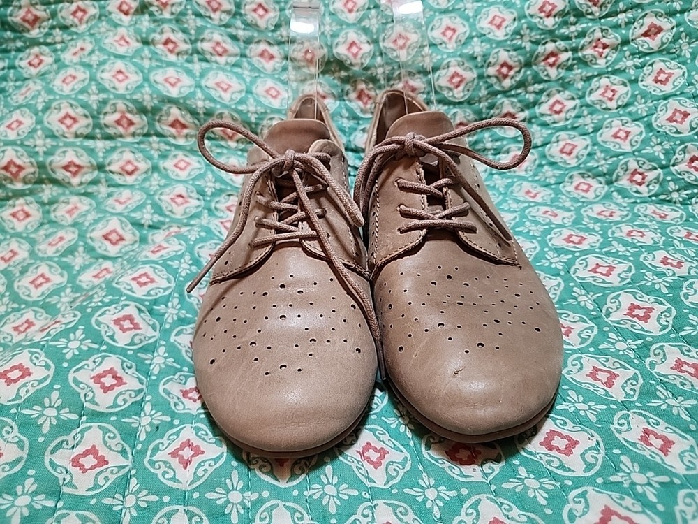 Nice condition women's tan leather lace up oxfords. Leather is soft and supple. So.e light scratches in leather near heels and small scratch in left toe, see pics.