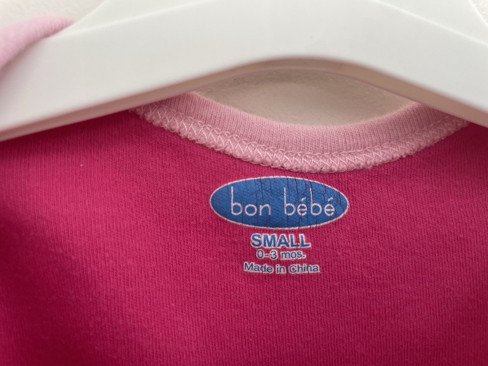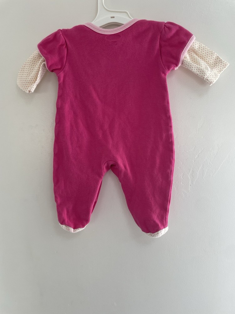 Occasion: Casual Features: Comfort, Easy Care, Lightweight, Stretch Size: 0-3 Months Neckline: Crew Neck Country of Origin: China Pattern: Polka Dot Style: 1-Piece Department: Girls Season: Fall, Spring, Summer, Winter Material: 100% Cotton Brand: bon bébé Color: Pink Number of Pieces: 1 Piece Theme: Animals, Butterfly, Flower, Heart Sleeve Length: Long Sleeve Garment Care: Machine Washable Type: One-Piece Seller Notes: “In good condition. There are light stains on the footie. Free of rips.” Accents: Embroidered Closure: Snap