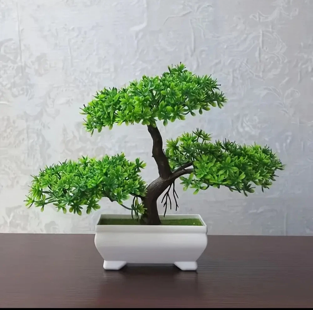 The product is an artificial bonsai tree, designed to mimic the appearance of a real bonsai tree with its green color and intricate details. This houseplant is perfect for adding a touch of nature to your home without the need for maintenance or watering. It can be used as a decorative piece in floral décor, home décor, or as a part of your home and garden display, bringing a sense of tranquility and beauty to any room.