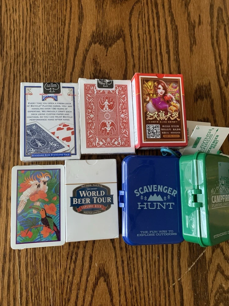 This lot of seven packs of playing cards includes a variety of well-known brands such as Bicycle, Hoyle, and Trump.these modern cards are perfect for card games, collecting, or for a scavenger hunt. Each pack offers a unique set of cards to enjoy and cherish for years to come.