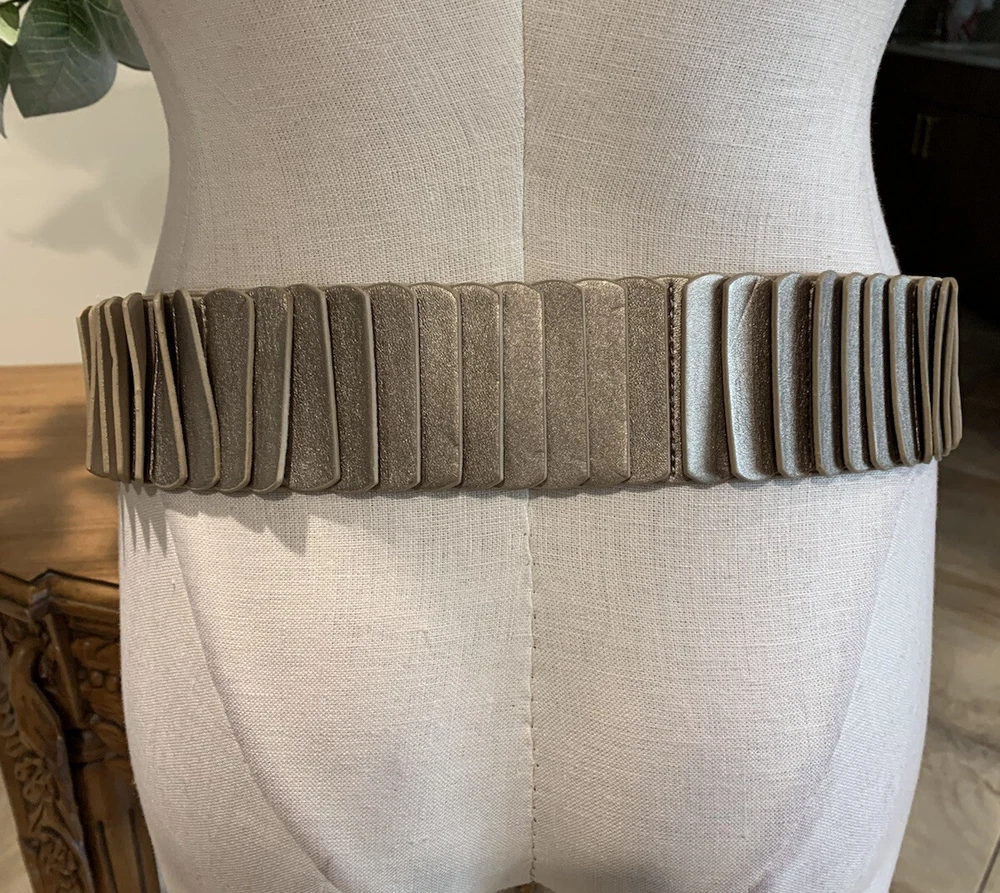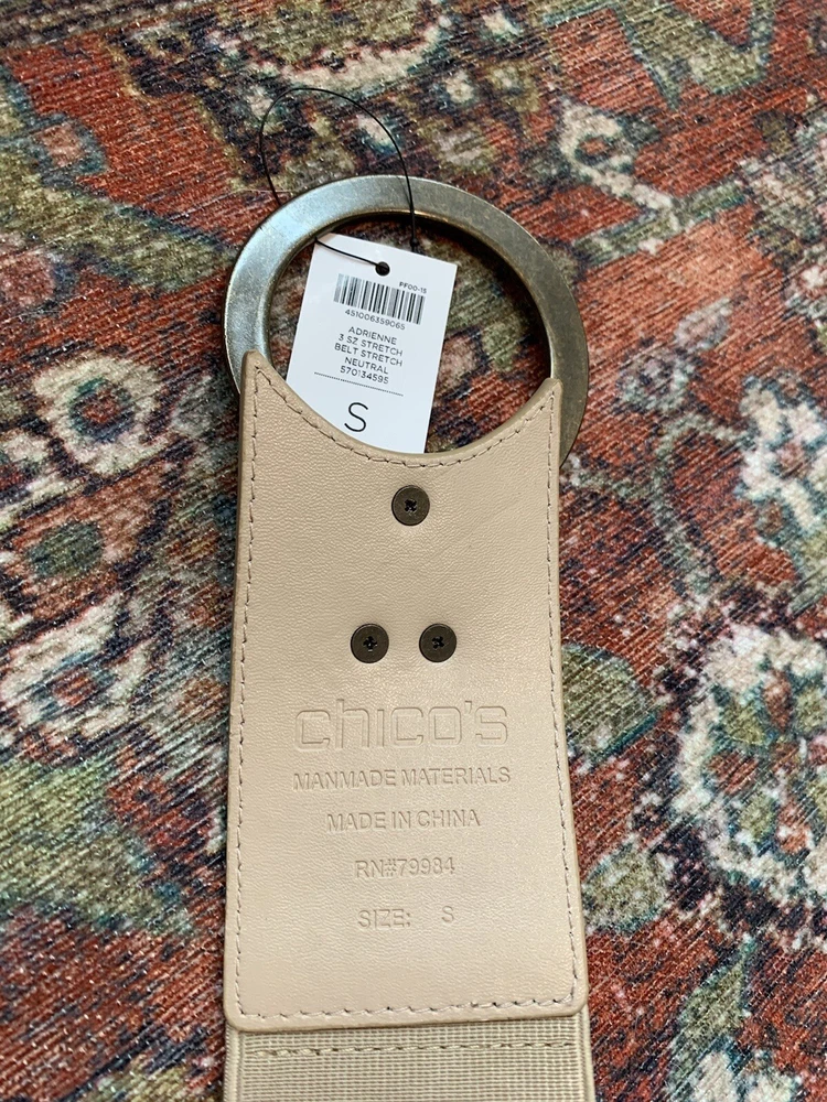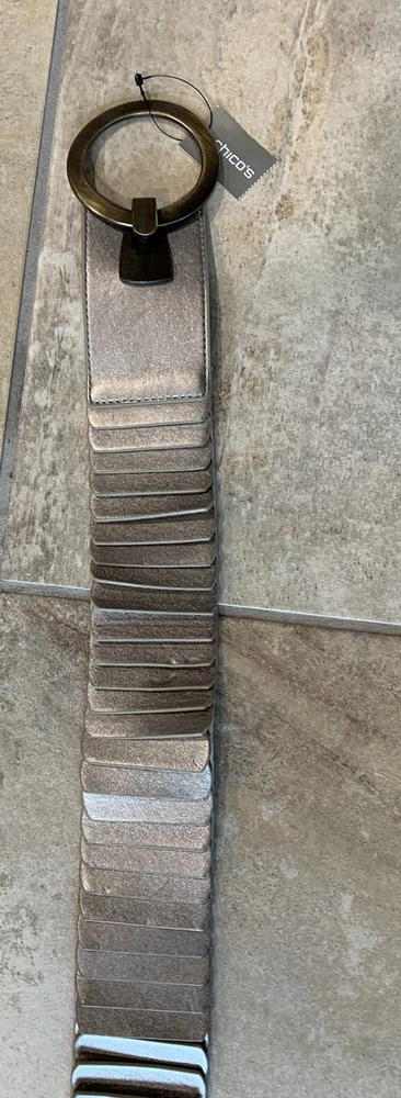 chicos women small bronze leather stretch statement belt adrienne W1. New with tags Leather Wide almost 2.5”