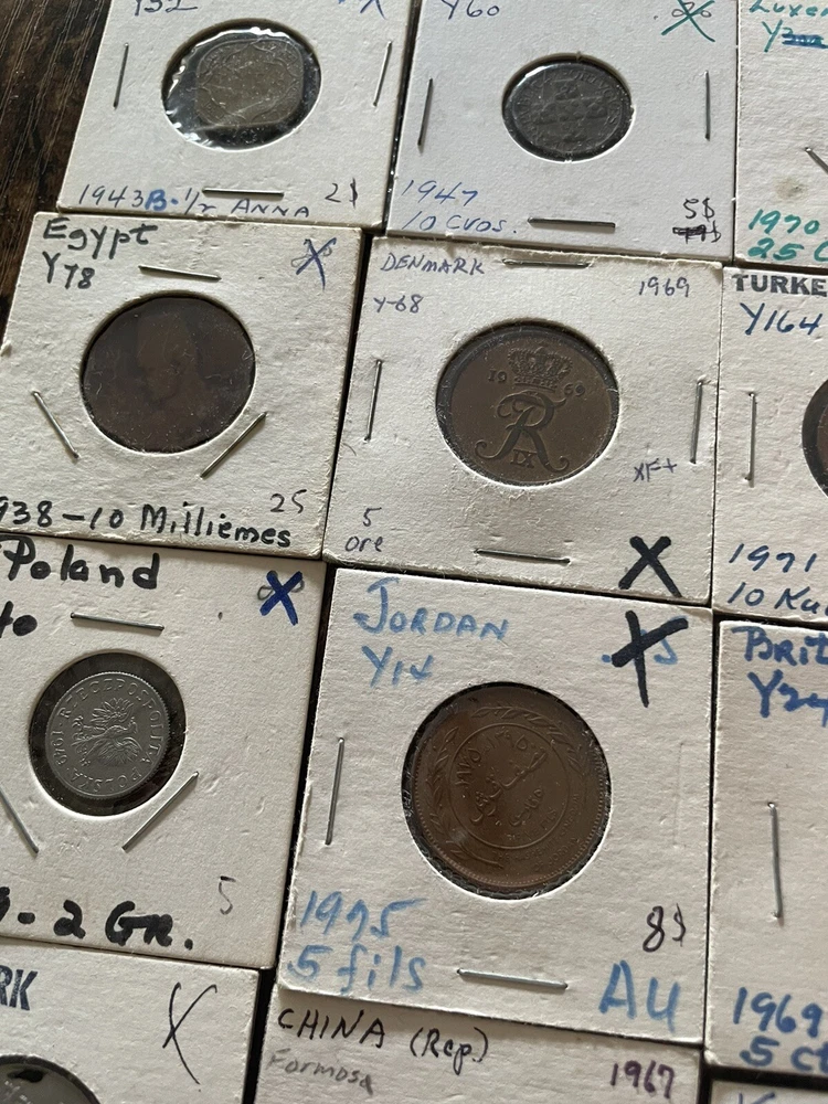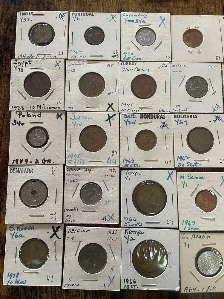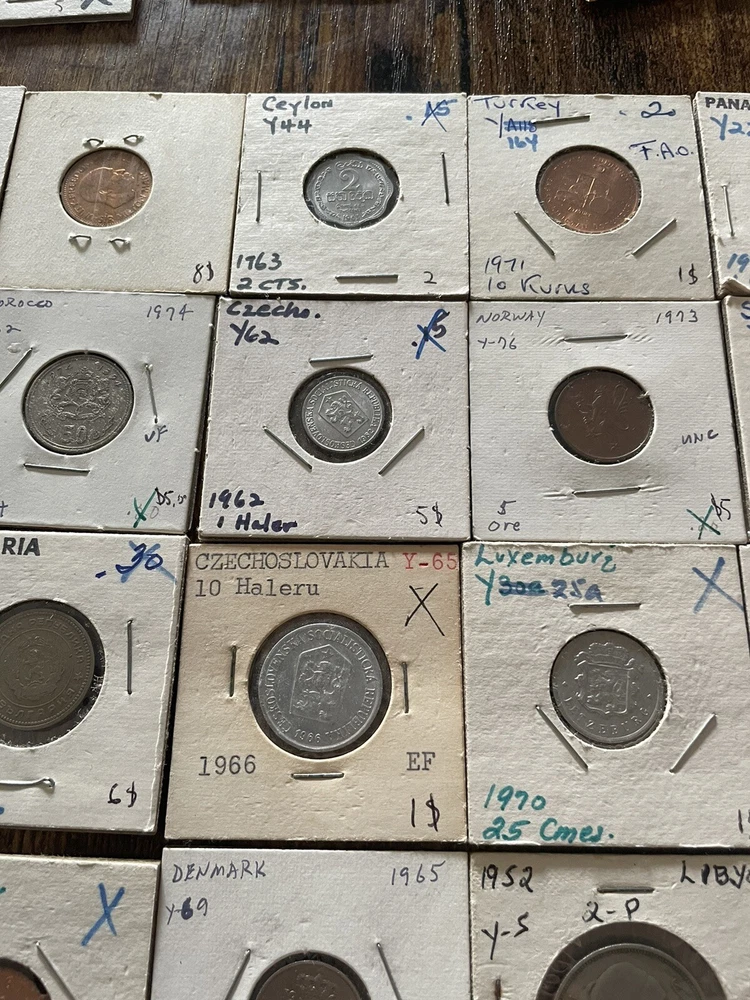 This coin collection lot includes a variety of coins from around the world. perfect for any collector or enthusiast. The coins come from various years and are uncertified, making them a unique addition to any collection. Whether you're a seasoned collector or just starting out, this lot is a great way to add some coins to your collection. 45 coins in this collection total