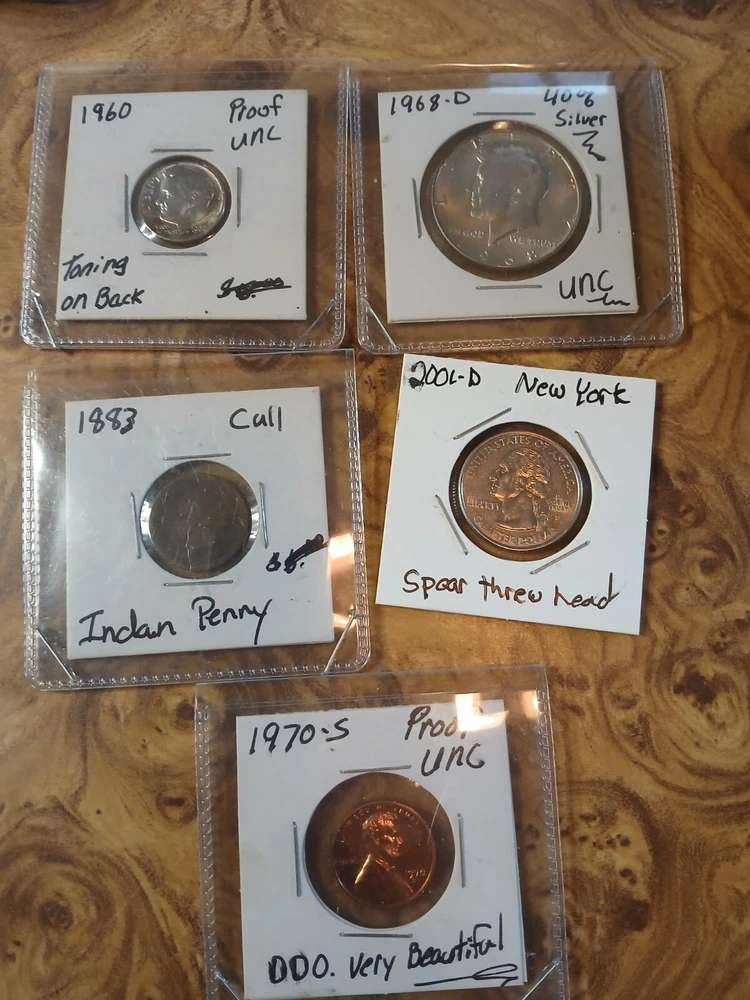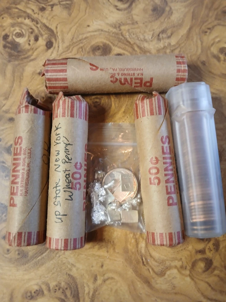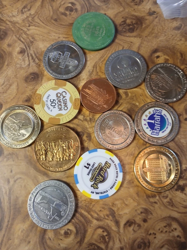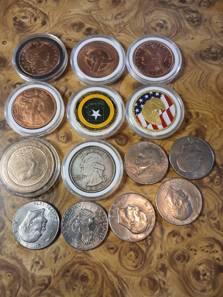 Silver. Gold nuggets. Gem Stones. Wheat Penny's from New York. SLABS. Casino Tokens. Ikes. And 60 coin stands
