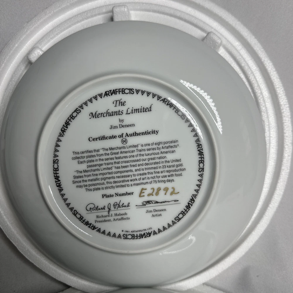 collectible train plates porcelain Great American Trains by Jim Deneen 8" Full set of 5 The broadway limited The Alton limited The capitol limited The merchants limited The South western limited See pictures .