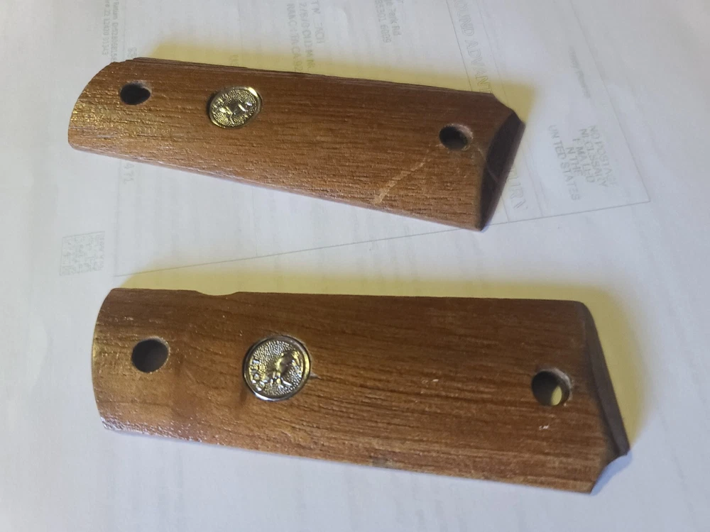 Enhance your Colt 1911 .45 ACP handgun with these smooth wood grips, designed to offer both a comfortable grip and a classic aesthetic. The rich brown hue of the wood complements the firearm's robust aesthetic, ensuring that your shooting experience is both stylish and secure. Crafted specifically for Colt firearms, these grips fit seamlessly, providing a seamless integration with your handgun. Please let me know if you have any questions or concerns. Ship is 9.00 USPS ground advantage, ebay will likely add tax.