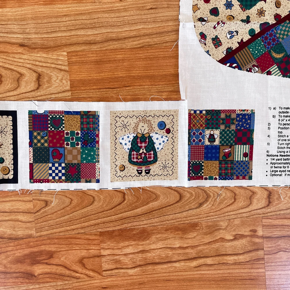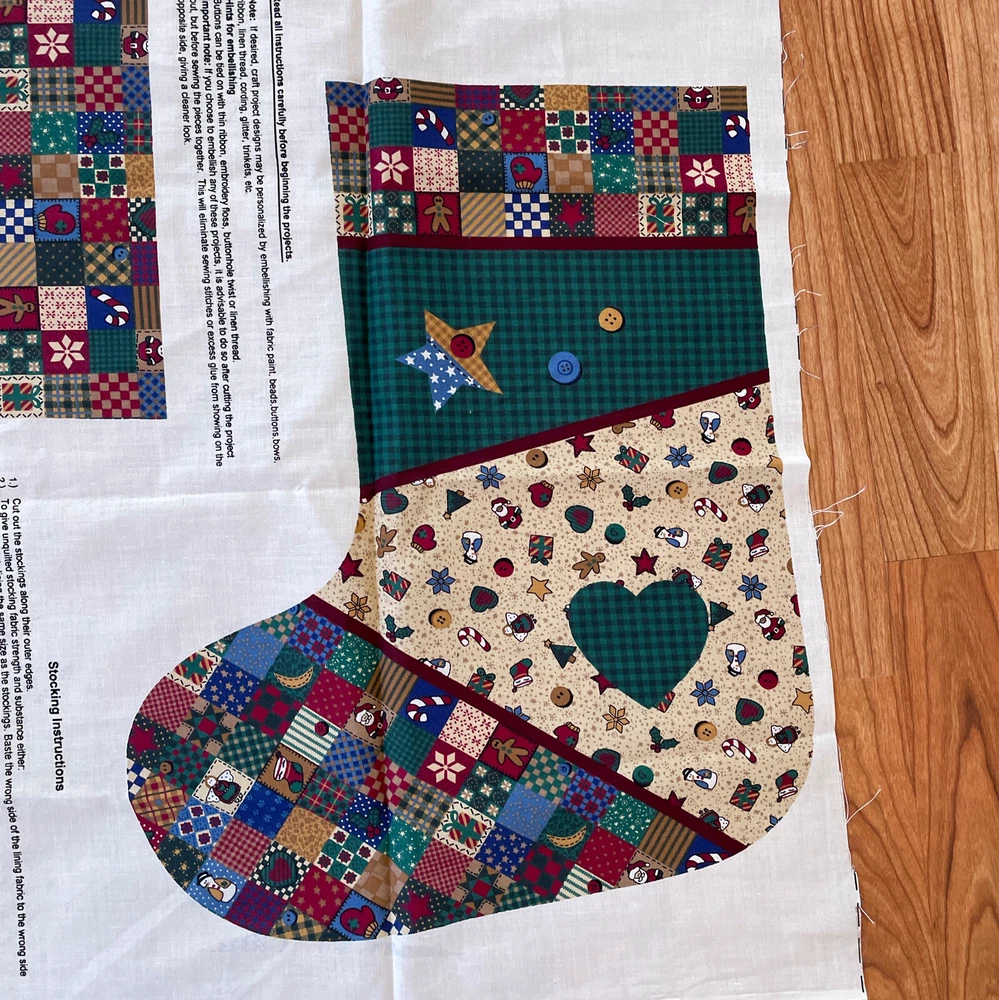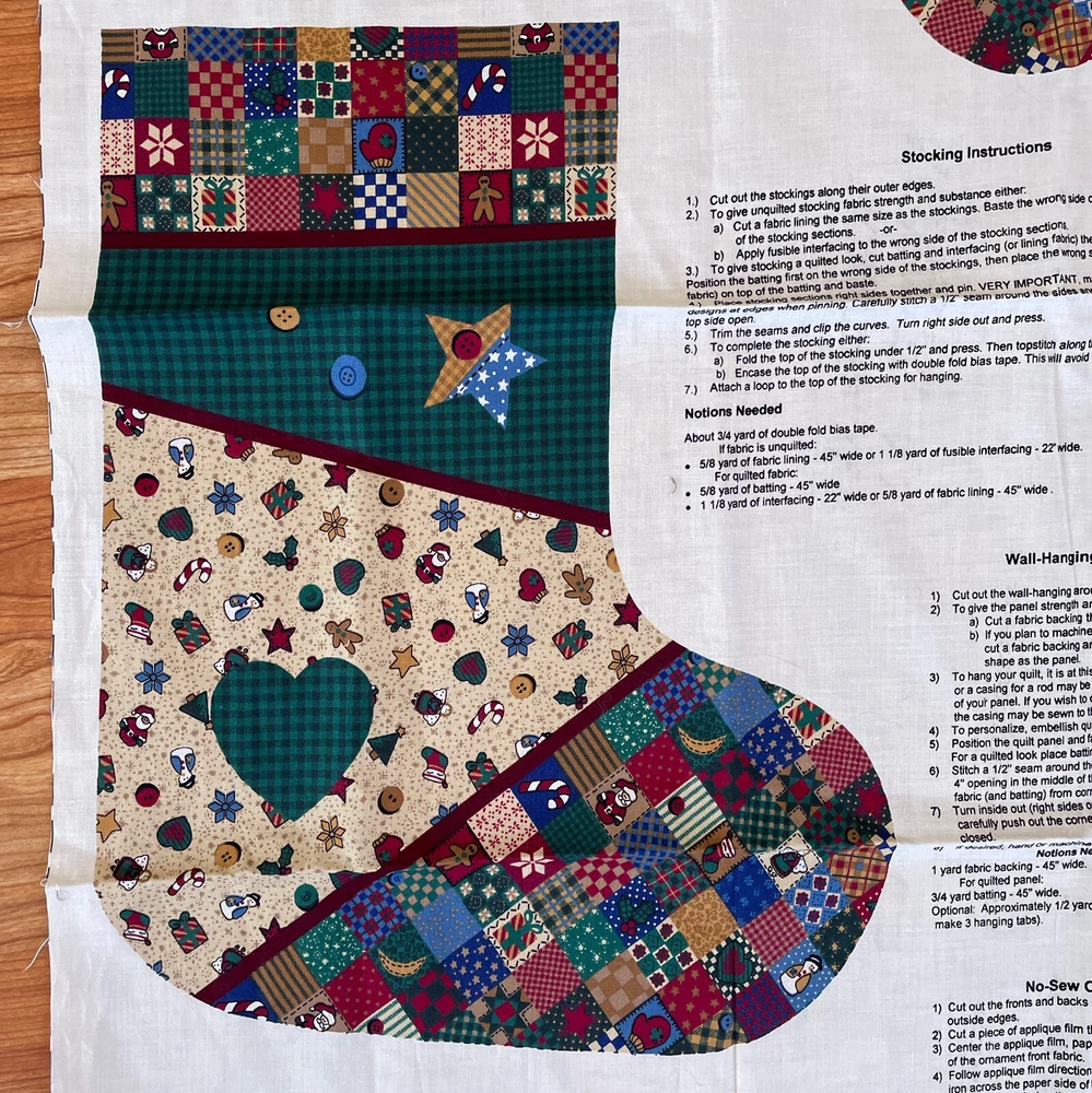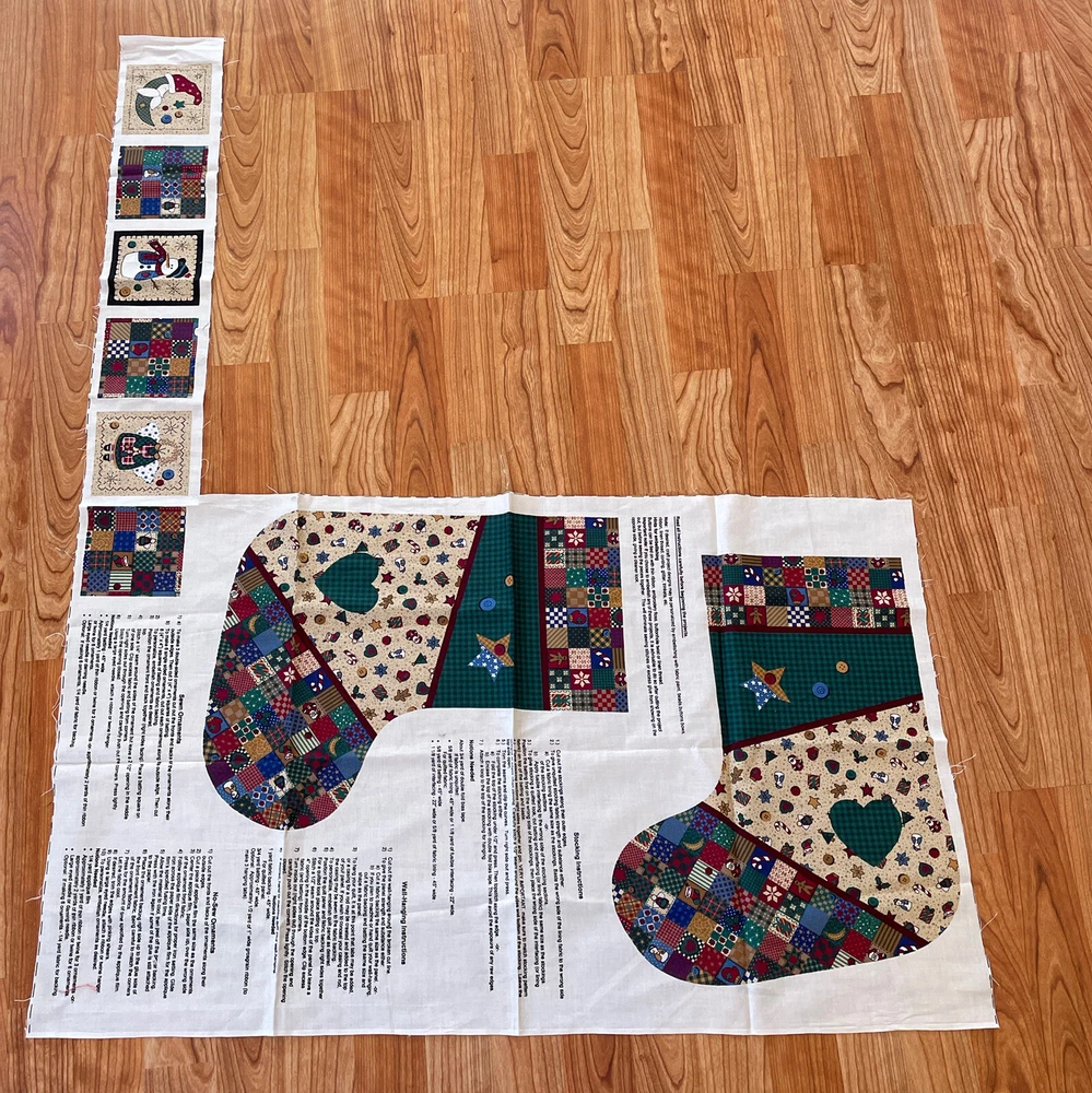 country patchwork cut and sew stocking and ornaments cranston. Comes as a panel to make one stocking and 3 ornaments.
