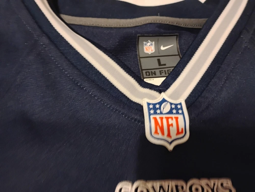 Get your little cowboy ready for game day with this jersey! Made for fans of the National Football League (NFL), this football jersey is perfect for any young fan. With a size of L, it's sure to fit most kids comfortably. Represent your favorite team with this high-quality jersey that is perfect for any football-related activity. Whether your child is playing a game of tackle football or just lounging around the house, this jersey is sure to become a favorite.