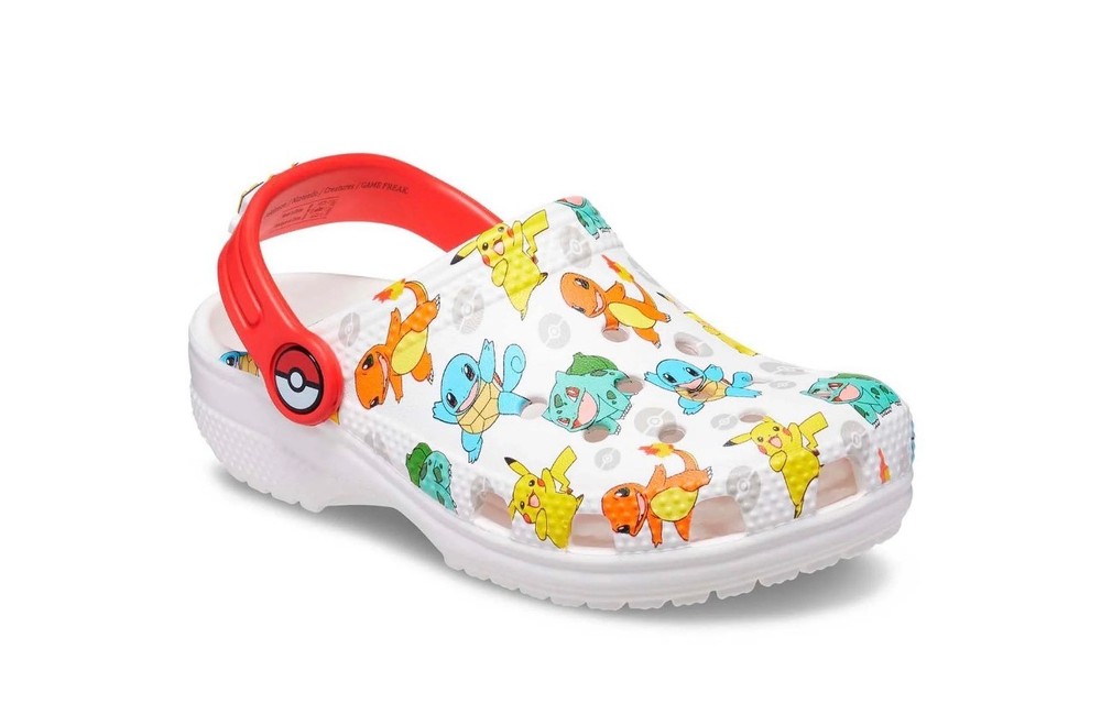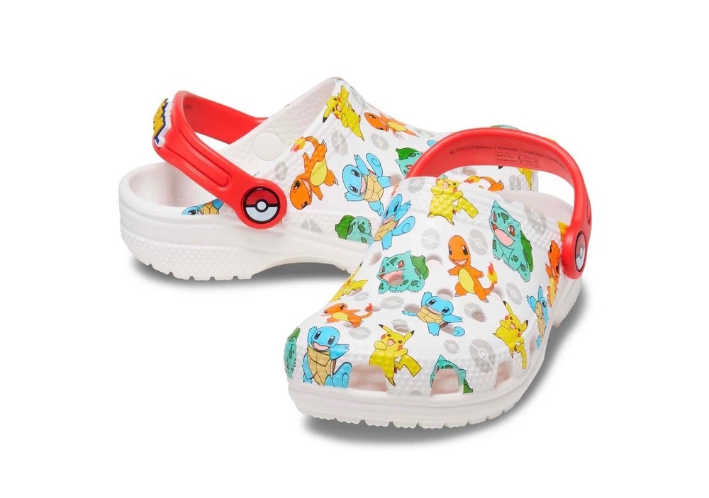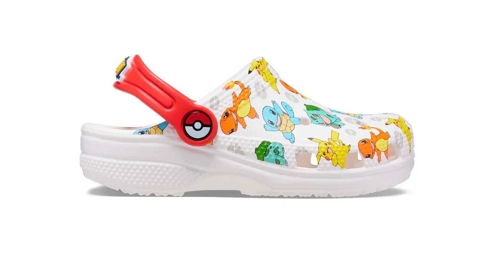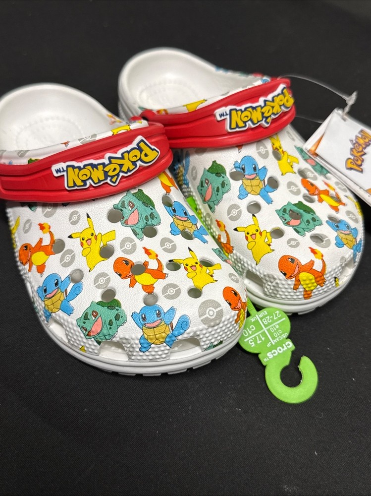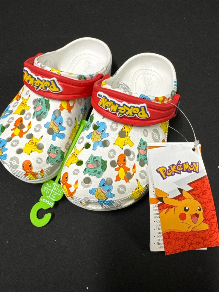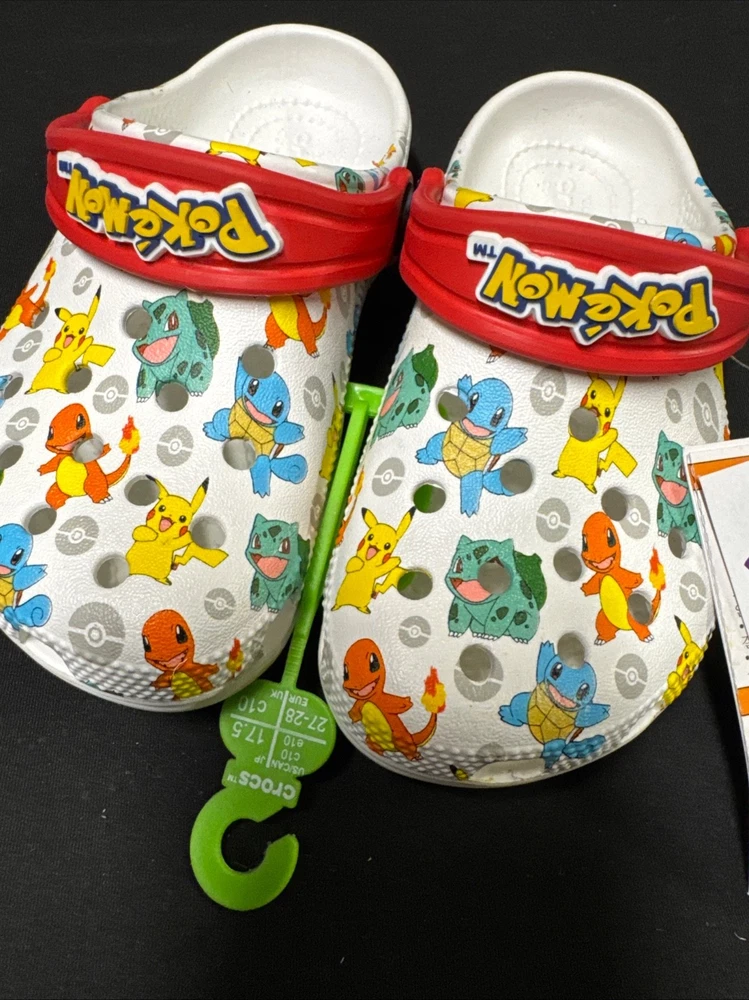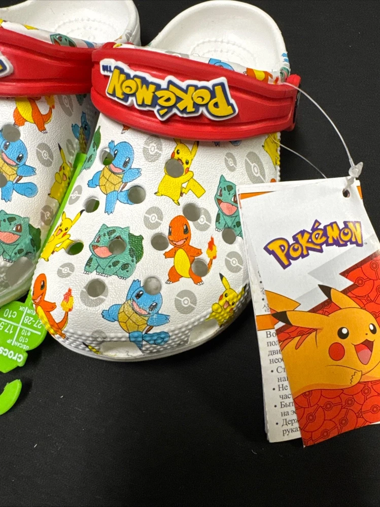 The product is a limited edition pair of Crocs Pokemon clogs in children size, featuring a round toe design, slip-on style, and flat heel. The multicolor rubber sandals are adorned with the Pokemon logo, making them a fun and stylish choice for casual occasions during the summer and spring seasons. With moderate cushioning and a low-top shoe shaft style, these clogs are both comfortable and trendy for fans of the Pokemon franchise. The rubber outsole provides durability, while the rubber insole ensures a cozy fit for your little ones.