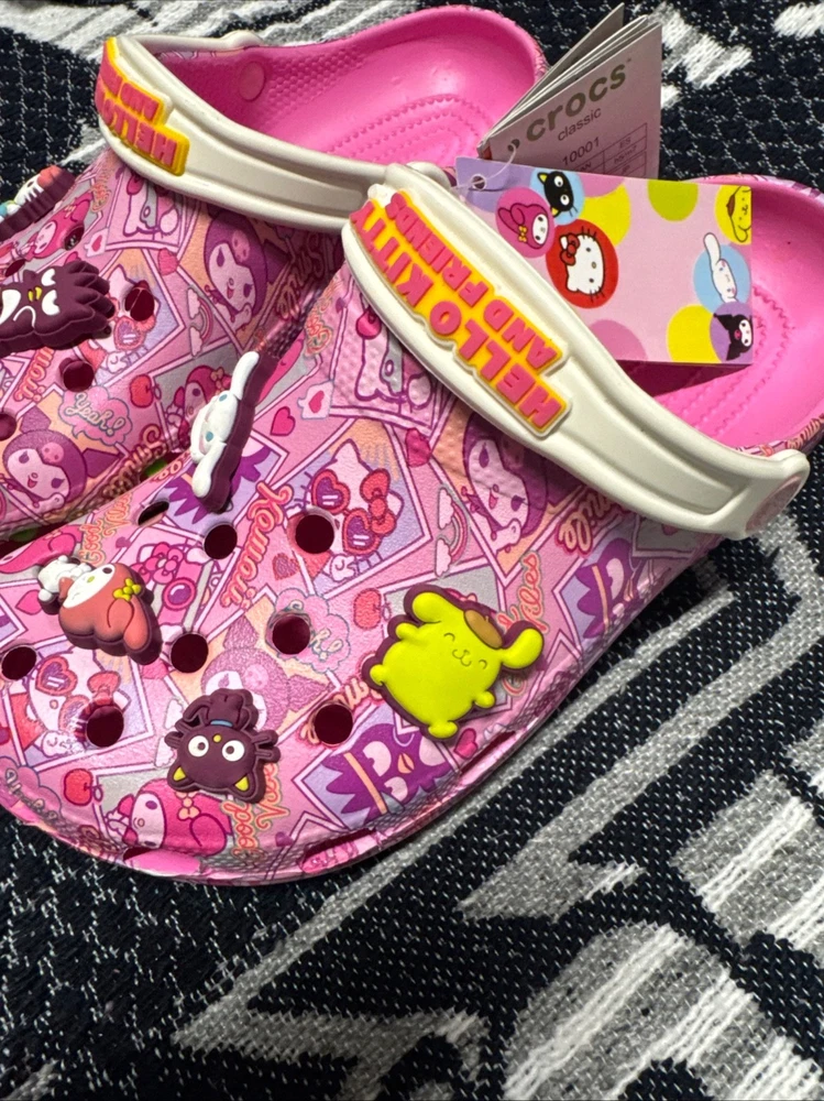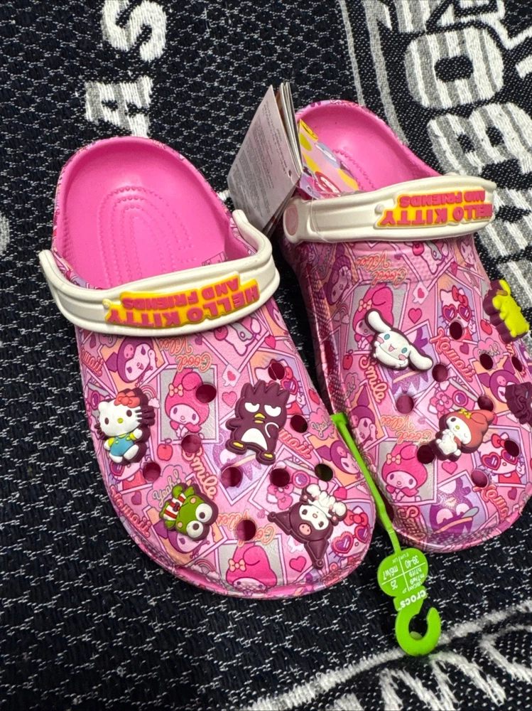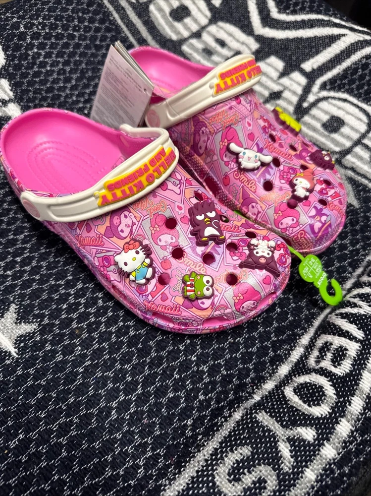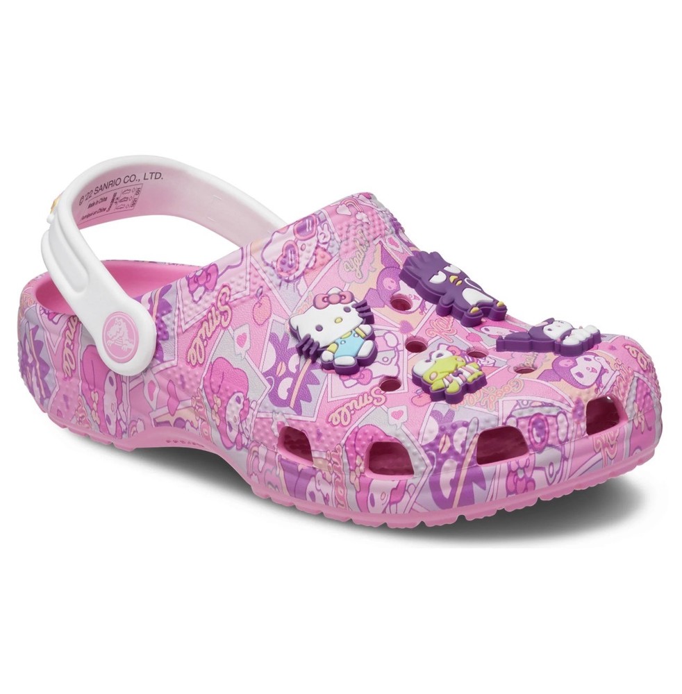 The Crocs Hello Kitty and Friends Sanrio limited edition sandals are a fun and playful option for kids. With a low top design, slip-on closure, and flat heel, they are perfect for casual occasions in the spring, summer, or fall. The pink color and Hello Kitty character make them a cute choice for young fans of the popular cartoon. Made of synthetic lining material and featuring a rubber outsole, these sandals offer moderate cushioning and are suitable for both boys and girls.
