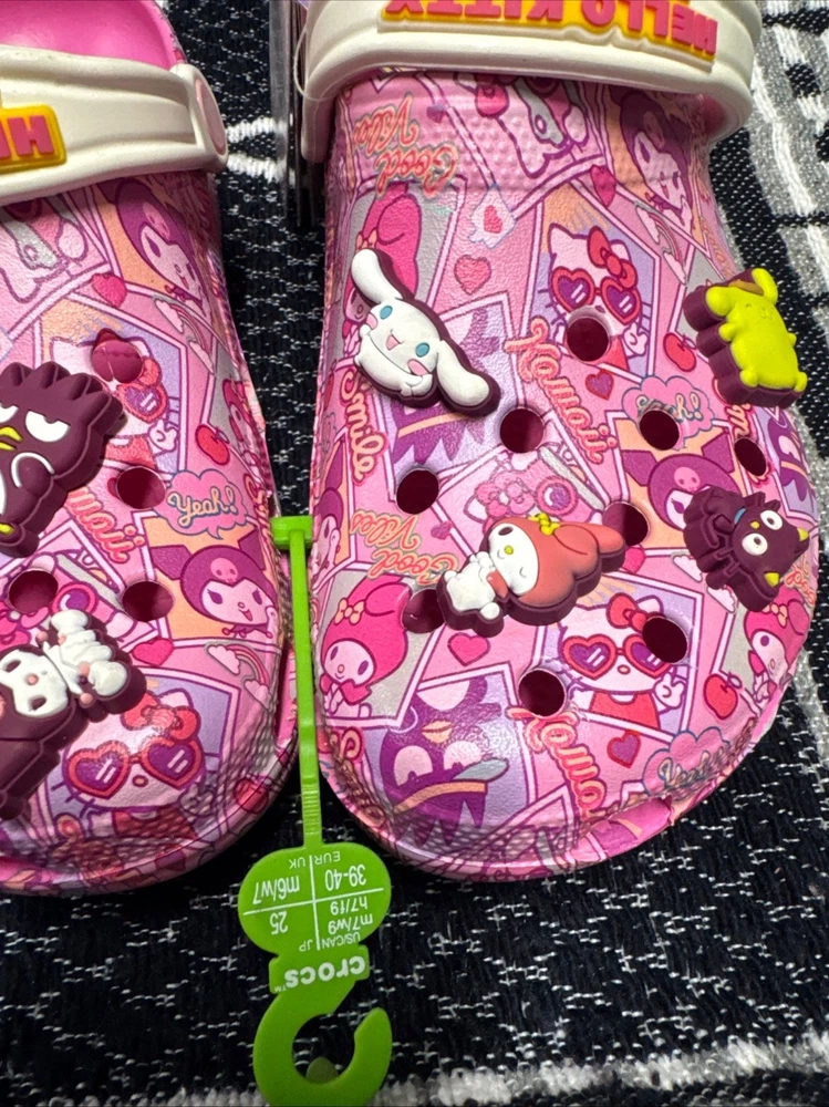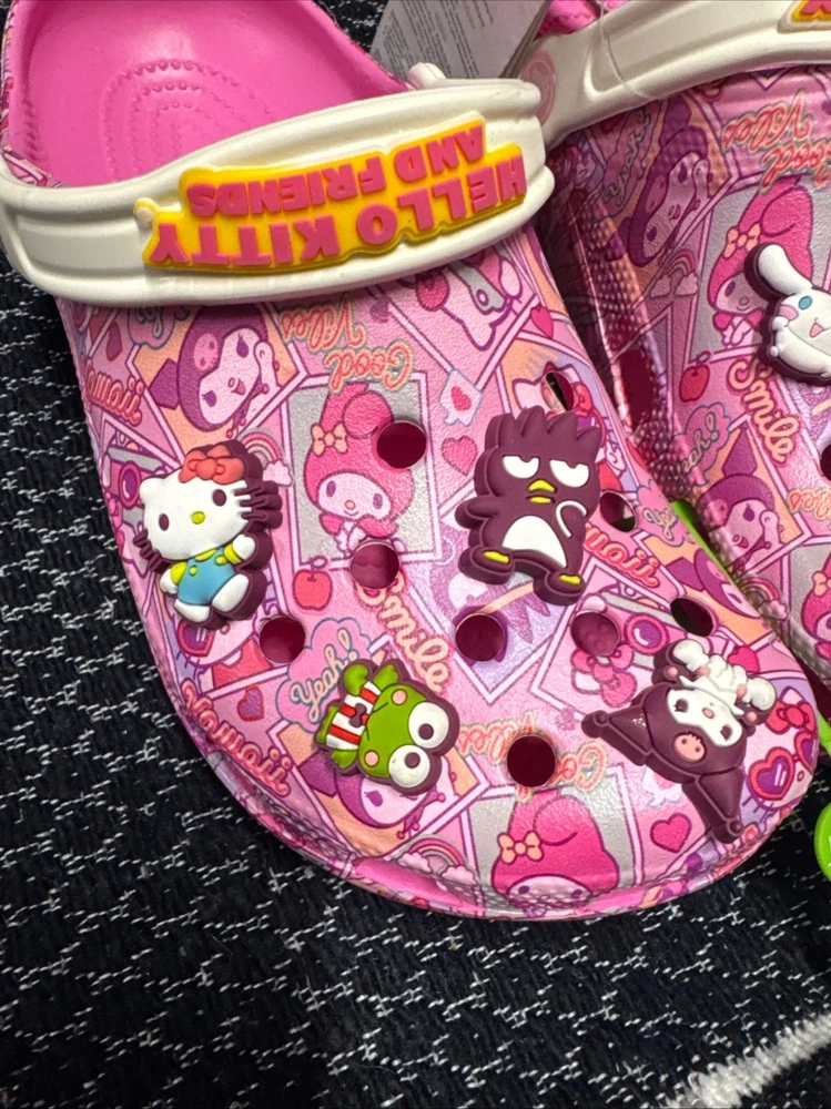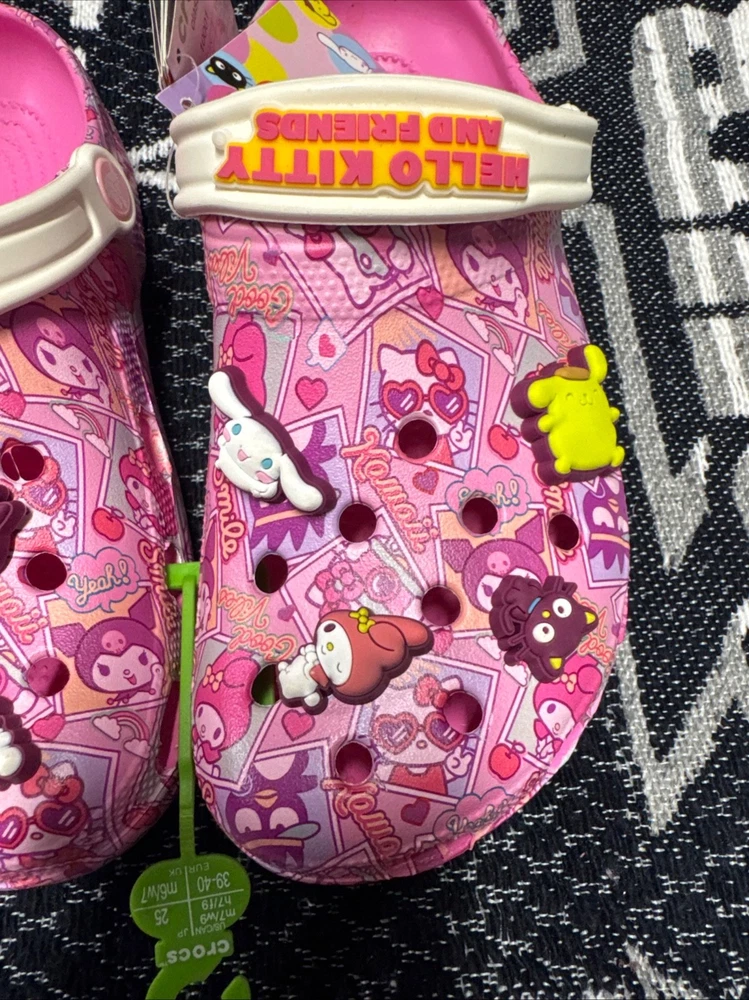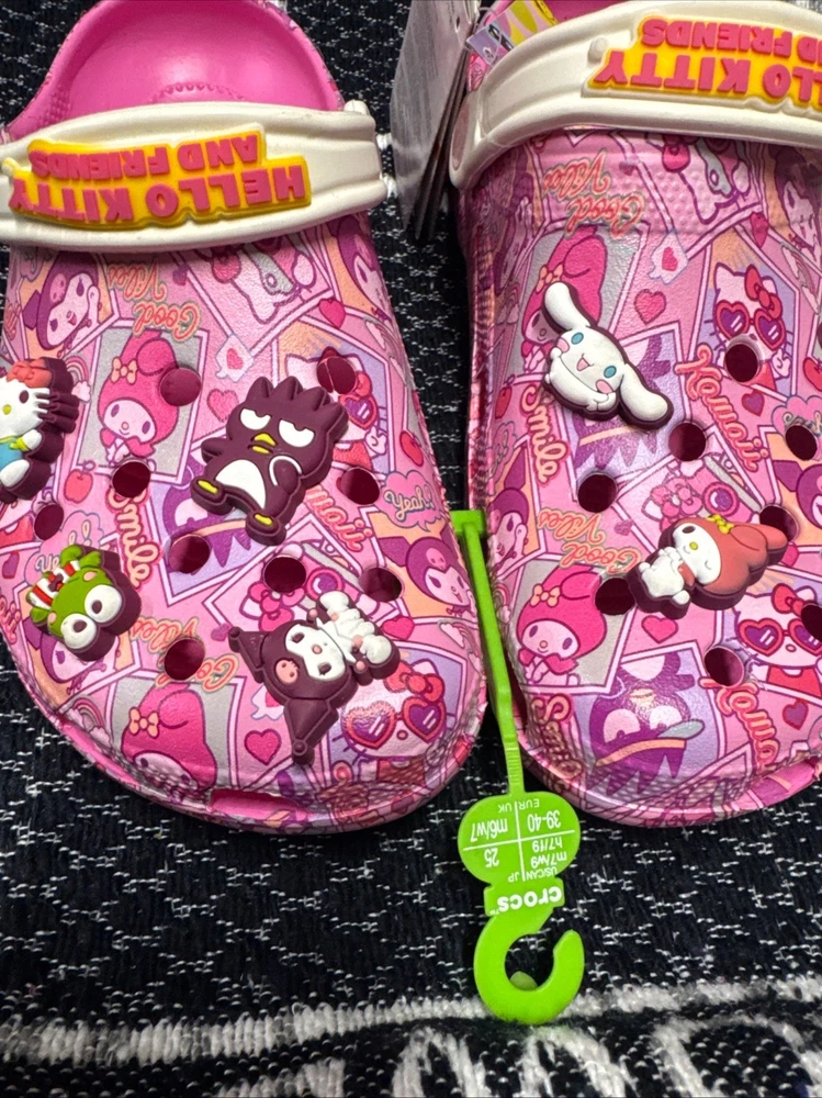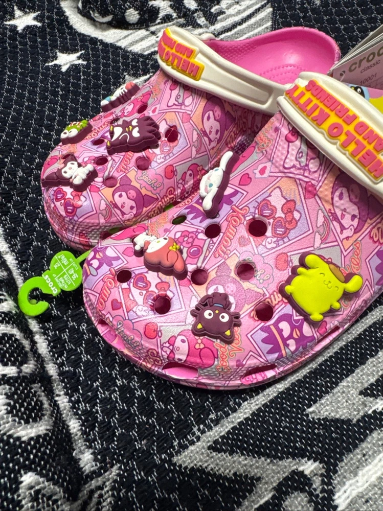 The Crocs Hello Kitty and Friends Sanrio limited edition sandals are a fun and playful option for kids. With a low top design, slip-on closure, and flat heel, they are perfect for casual occasions in the spring, summer, or fall. The pink color and Hello Kitty character make them a cute choice for young fans of the popular cartoon. Made of synthetic lining material and featuring a rubber outsole, these sandals offer moderate cushioning and are suitable for both boys and girls.