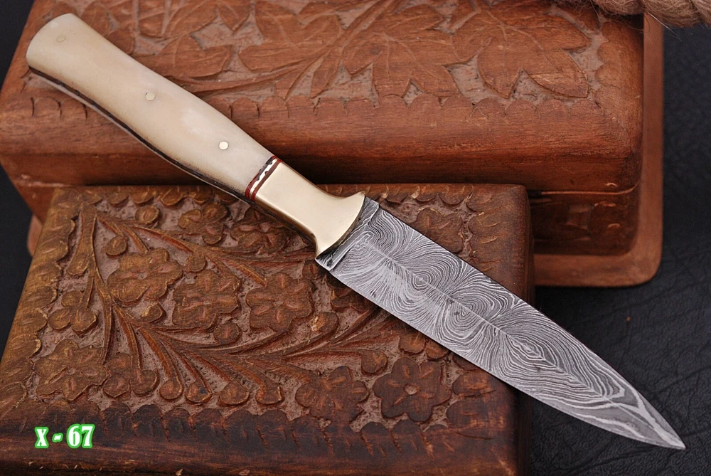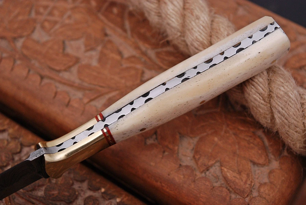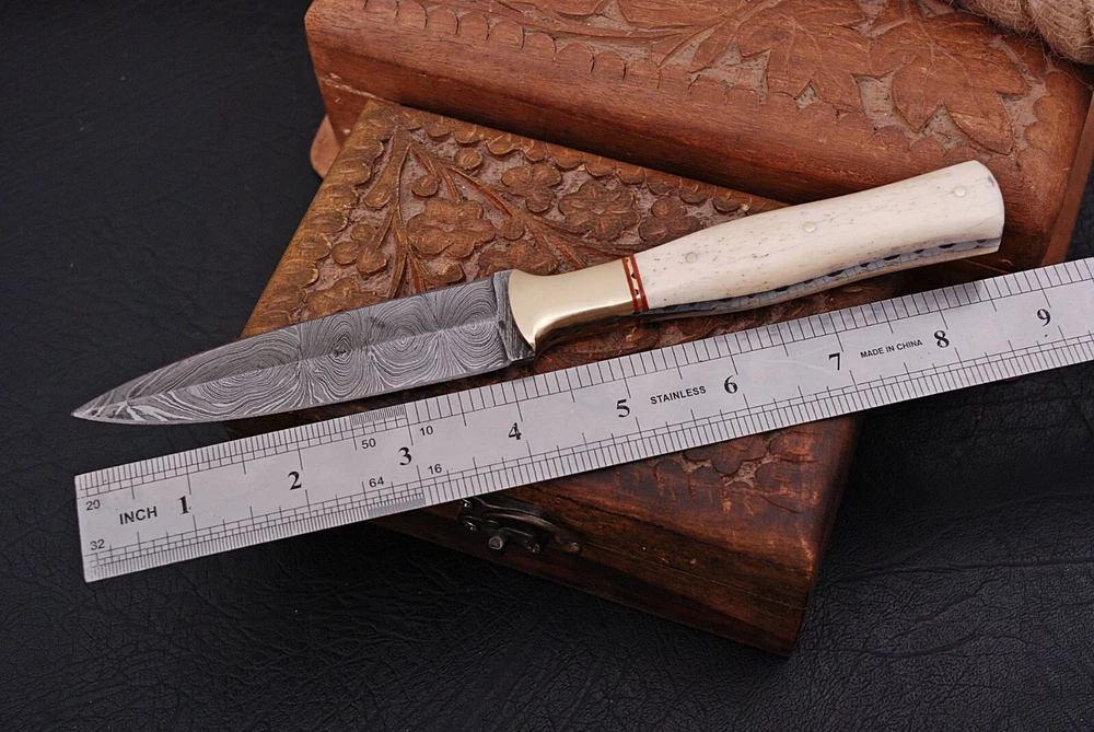 Introducing a top-quality handmade hunting dagger with a double-edged blade made of Damascus steel. This stunning piece features a full tang handle with a black blade color and spear point design. The blade length ranges from 4" inches, making it a perfect everyday carry tool, combat, blade and throwing knife, or even a boot and survival knife. Overall: 9” inch With Genuine leather sheath This original and authentic piece is hand-forged with the highest level of craftsmanship and attention to detail. The knife comes with a sheath included and is also ideal for collectors and enthusiasts. Get your hands on this exceptional hunting dagger, designed and manufactured in the United States, and add it to your collection today!