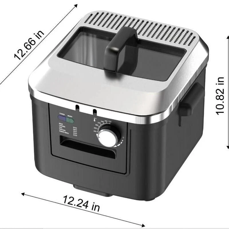 Make cooking easy with the 4L Deep Fryer. The deepfryer features a knob that can be used to set thetemperature quickly and simply. A viewing window allowsthe food to be seen as it cooks. The iron plate housing ofthis temperature-control deep fryer ensures durabilityand long-lasting use.lmmersion heating is used to givethe fried foods an enjoyably crisp texture. A detachablecord allows efficient storage when not in use. A charcoalair filter helps keep the fryer clean. Use the 4L DeepFryer to cook up French fries, onion rings, chicken wingsand many other tasty foods for the whole family. Enamel-coated oil pan Adjustable temperature control4L non-stick removeable enamel tank Cool-touch handle Black Matte Housing Convenient viewing window Condition: New