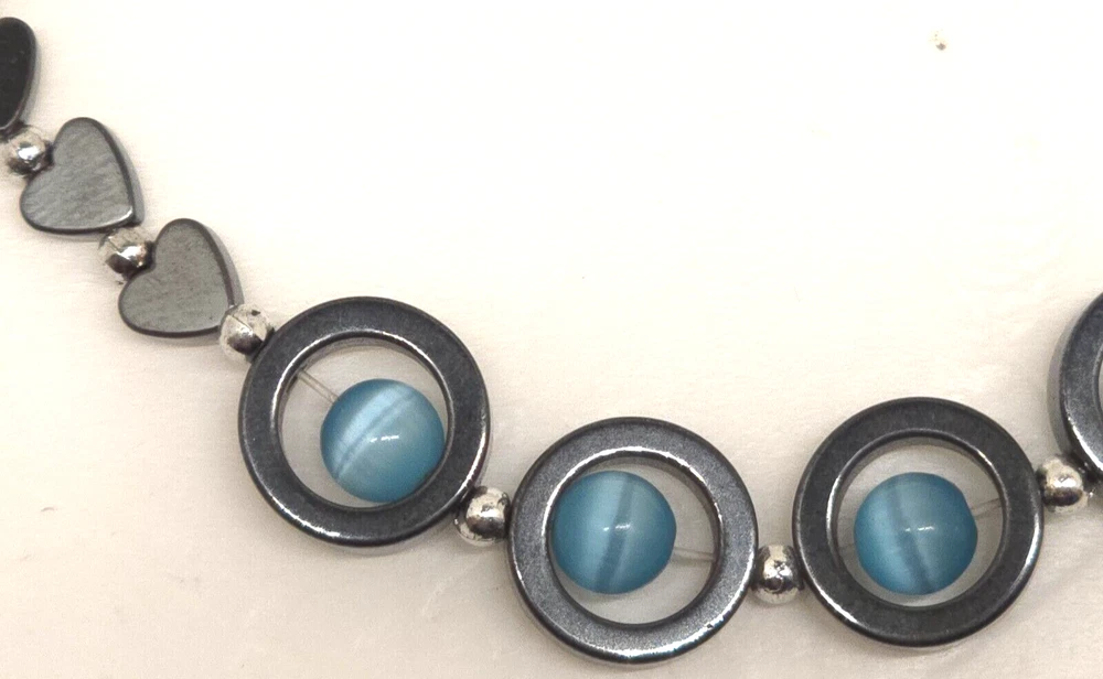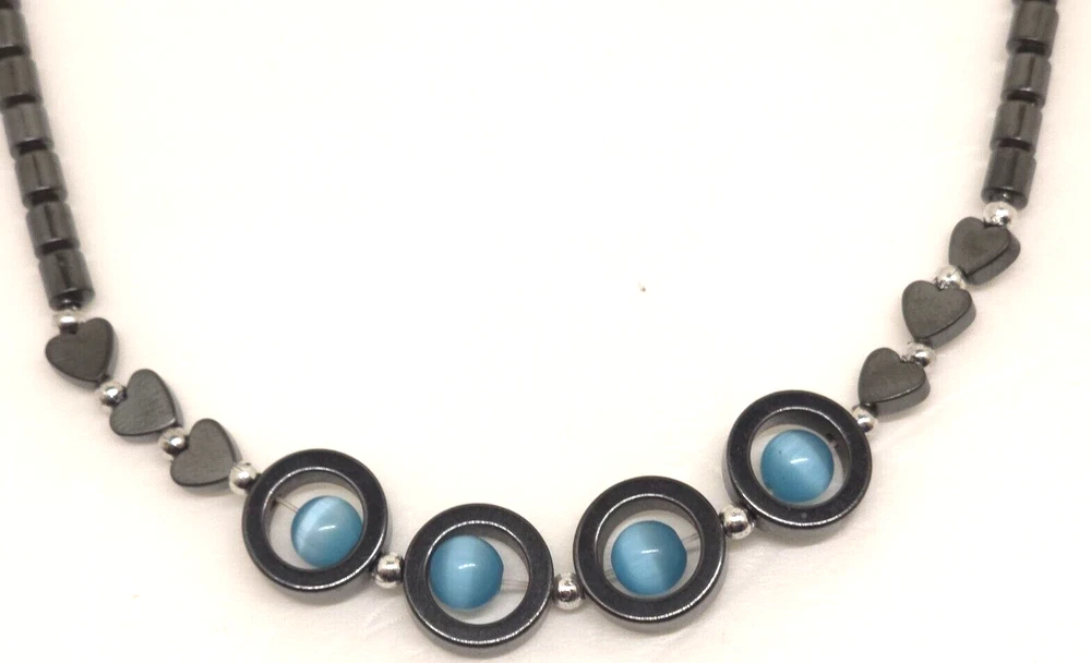 Crafted with an eye for style and a touch for the bohemian spirit, this dark grey beaded necklace is a testament to effortless elegance. The piece features a unique heart and tube cats eye blue circle pendant that adds a touch of mystique to your ensemble. Its 15-inch length makes it a versatile accessory, perfect for a variety of necklines and outfits. The necklace's barrel closure ensures secure wear, while the gray beads provide a neutral backdrop that complements any color palette. Whether you're aiming for a gothic vibe, embracing your love for beauty and fashion, or simply accenting a casual look with a hint of sophistication, this necklace is sure to become a cherished addition to your collection.