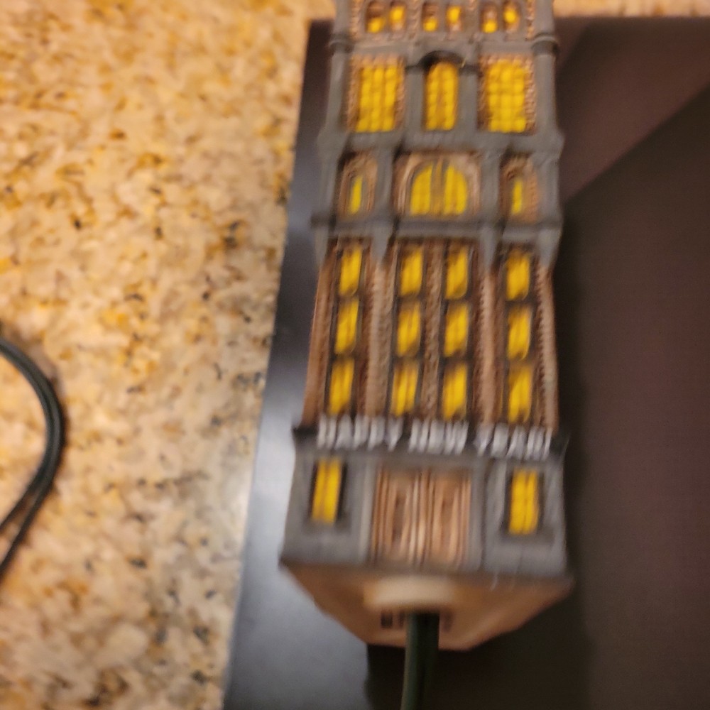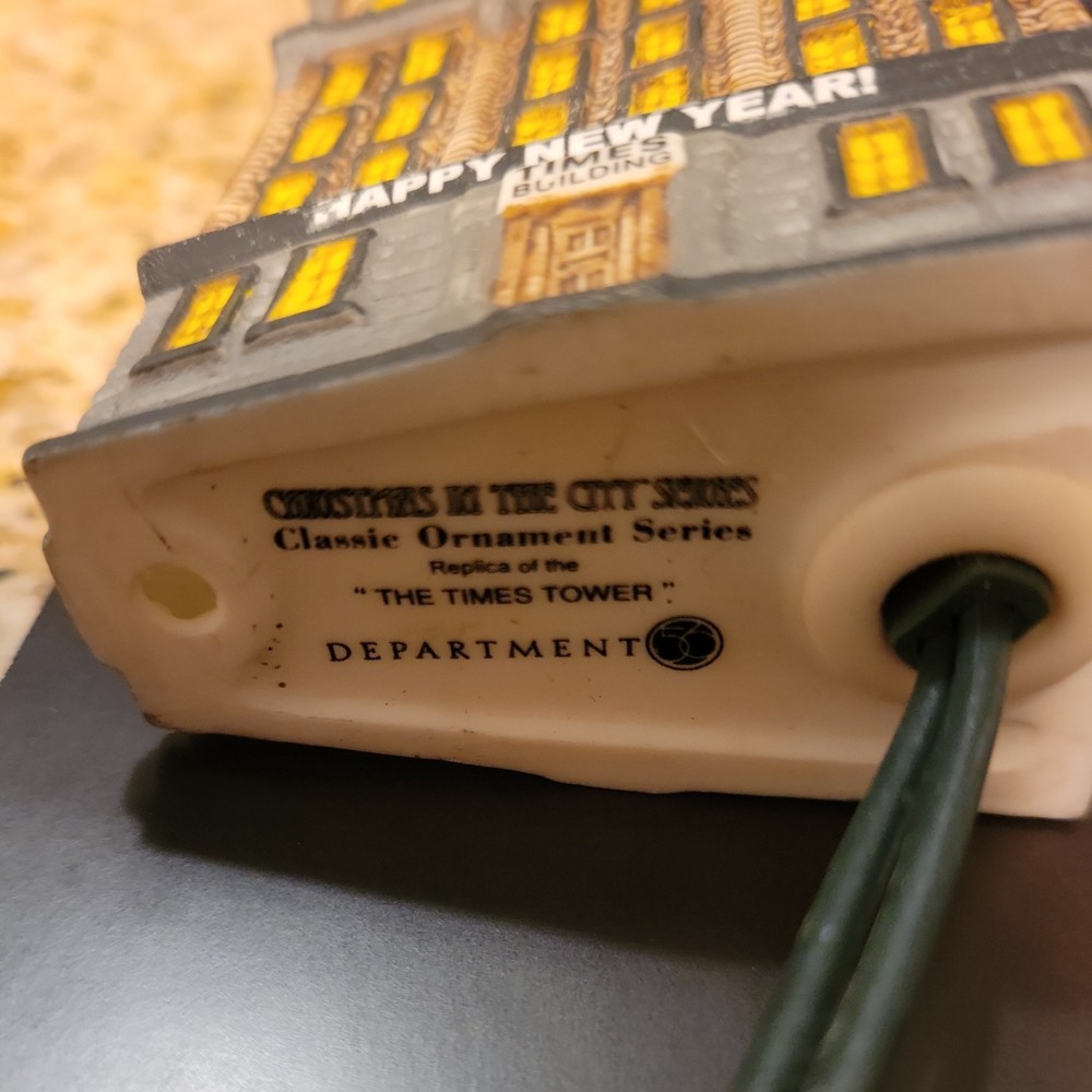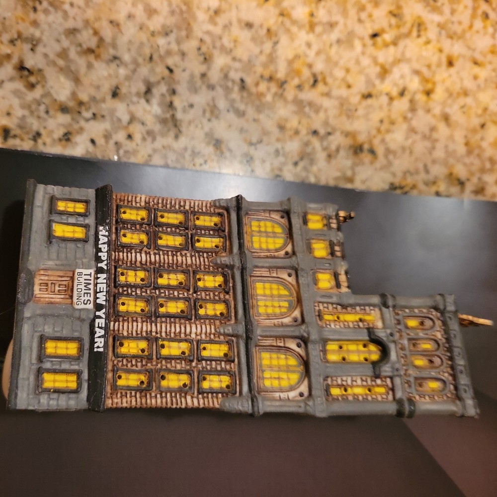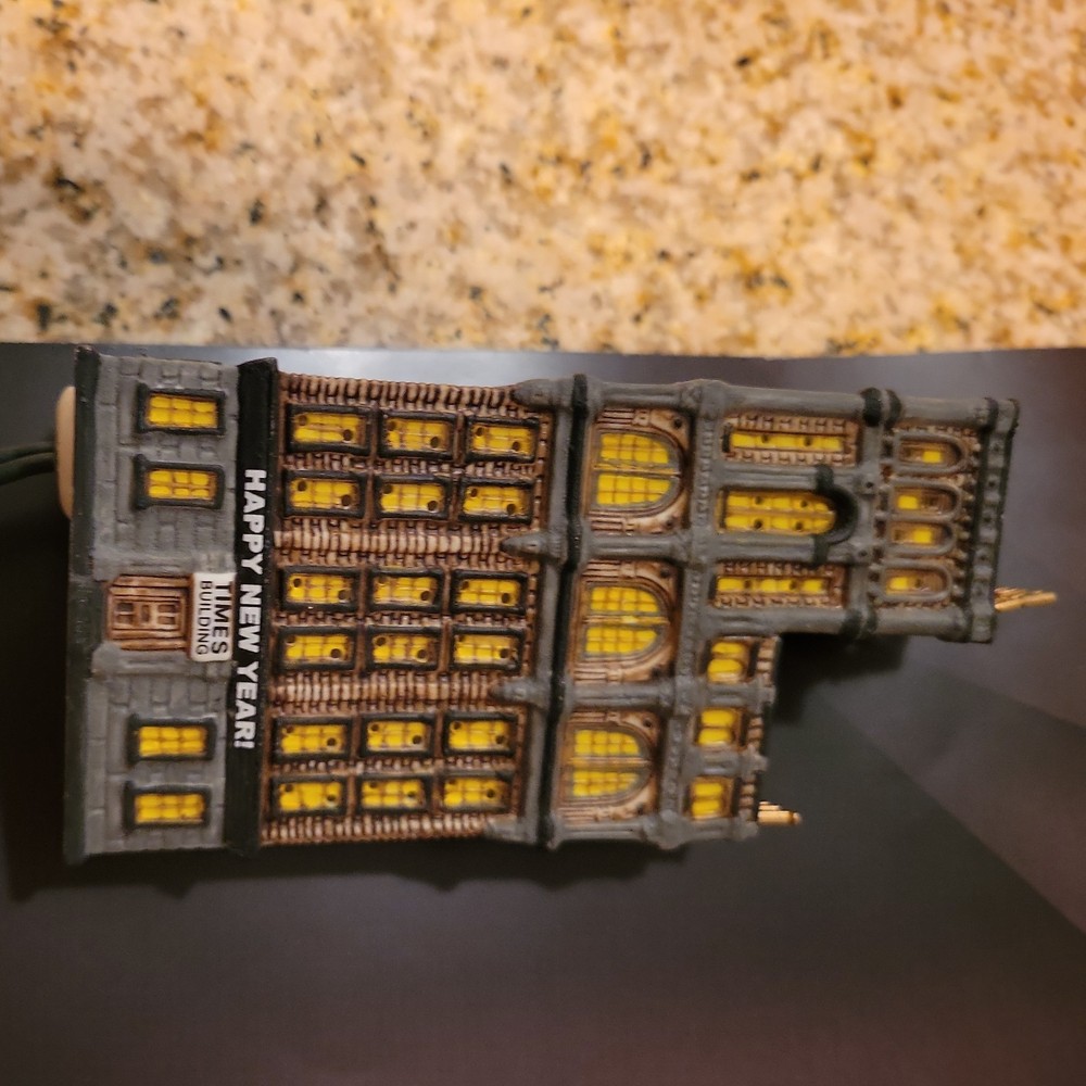 The Department 56 The Times Tower is a multicolored Christmas Village building from the Christmas in the City collection. This rectangular-shaped structure is a part of the original set. Perfect for New Year's, this painted building is a festive addition to any holiday and seasonal collection. Missing top ball piece.