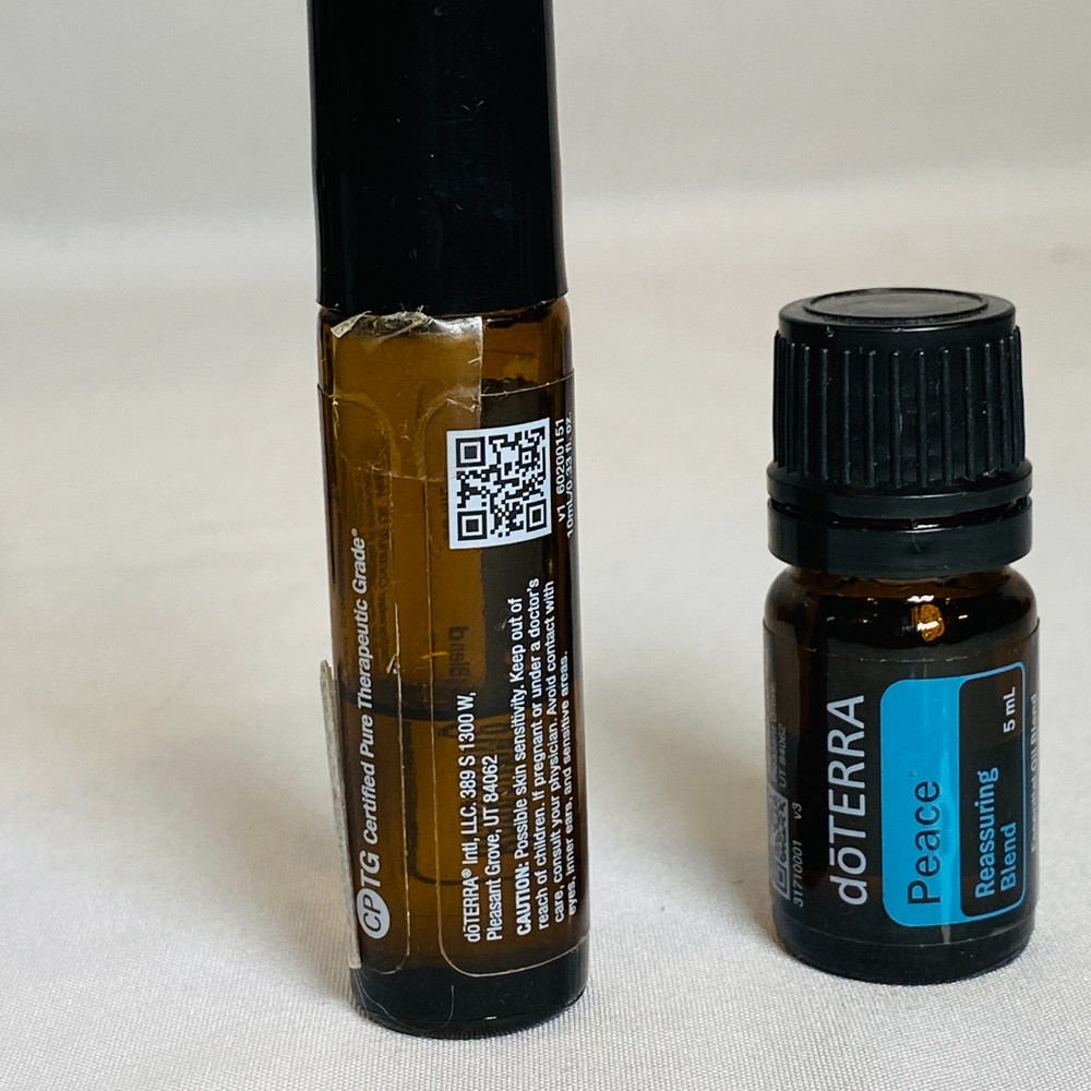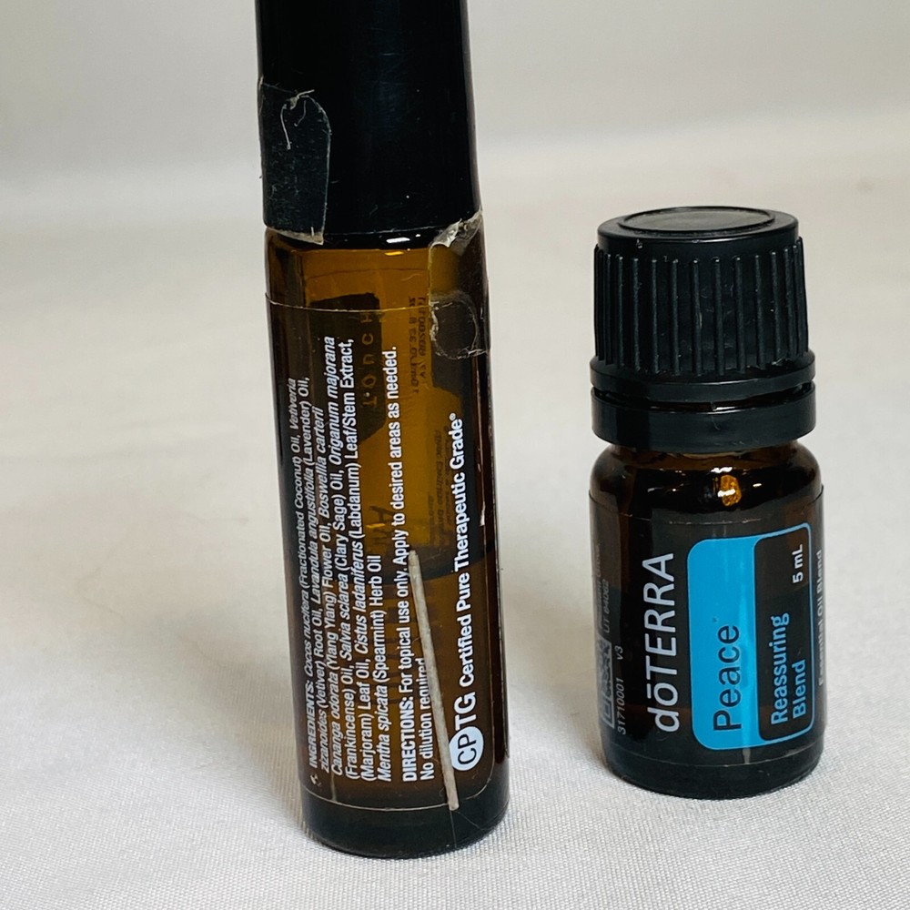 Lot of 2 Bottles - doTERRA Essential Oil - "Peace" Reassuring Blend. Listing includes 1x 5ml Glass Dropper Bottle (~60% full, ex. 2023.05) + 1x 10ml Roll-On Glass Bottle (~50% full, no exp. legible). Quantities & expiration dates are noted to the best of my ability, but please review all pictures carefully, as some dates can be hard to read and quantities are just an estimate, shown in photos, sold as is. Please see all pictures for exact cosmetic condition and other details, as they are part of the description as well, and ask any questions before purchasing. Bottles will be very carefully packaged for safe shipping. We are a husband and wife team with a growing family, and greatly appreciate your support of our small business. Please browse our eBay store for a variety of other essential oils. We hope you enjoy this set!