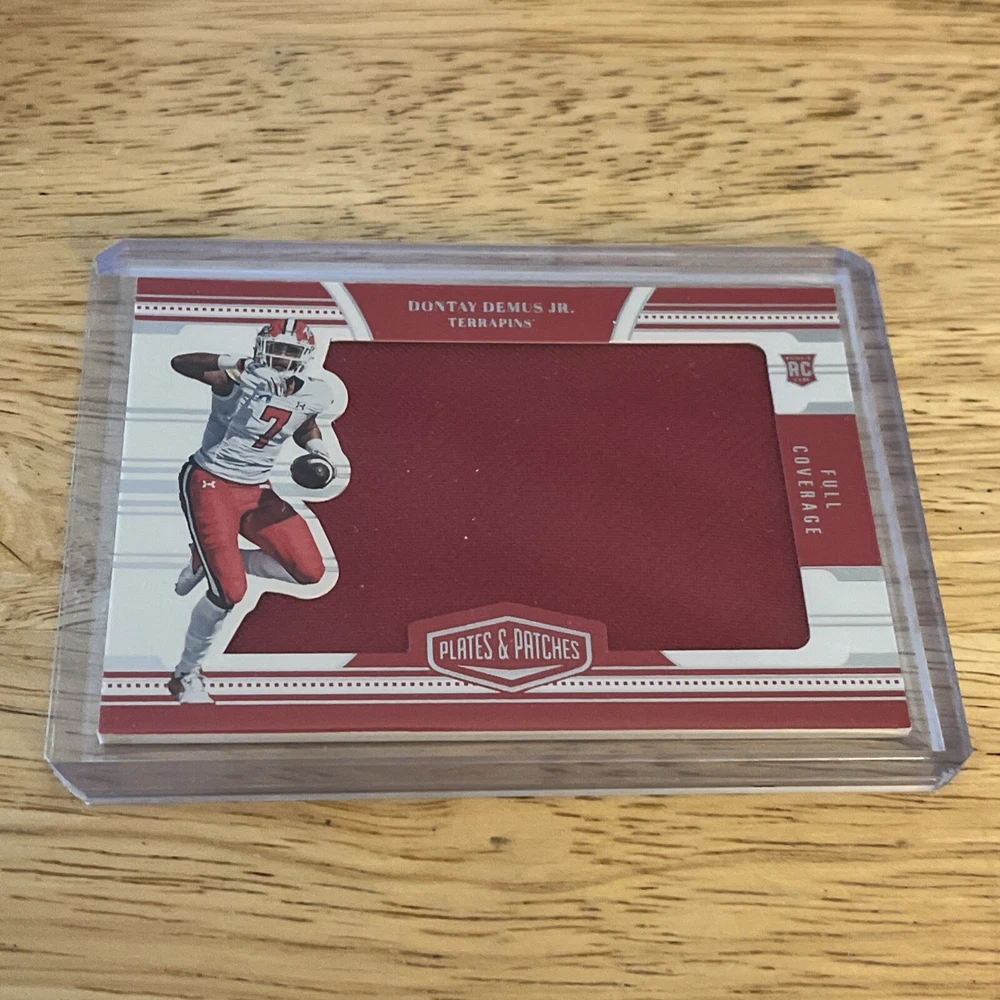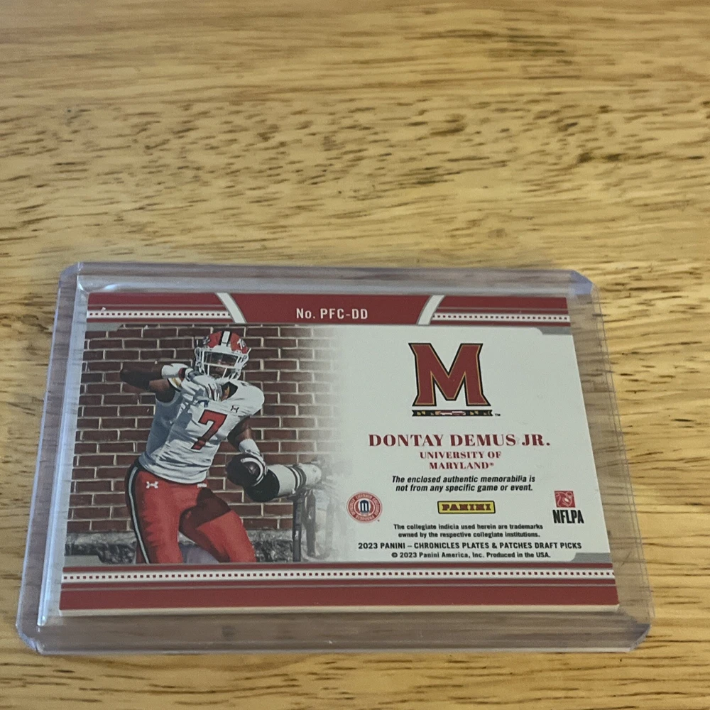 This rare Dontay Demus trading card features a stunning patch and is from the highly sought-after 2023 Panini National Treasures Collegiate set. The card is near mint or better and is perfect for any avid collector looking to add a unique piece to their collection. The card showcases Demus, a talented player from the Maryland Terrapins team, and is a must-have for any fan of the National Collegiate Athletic Association (NCAA). This sports trading card is a valuable addition to any collection and is sure to impress. With its beautiful patch and unique design, it is a great way to show off your love for the sport and support for your favorite team. Don't miss out on the opportunity to own this rare and valuable card.