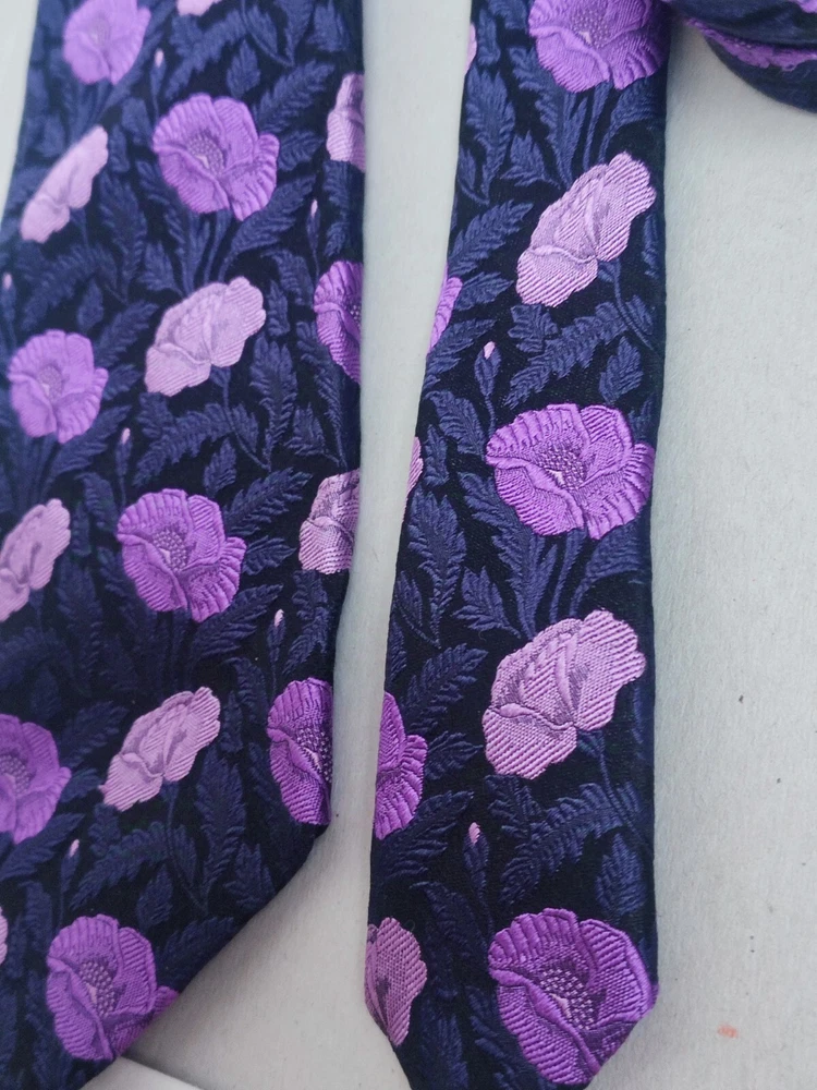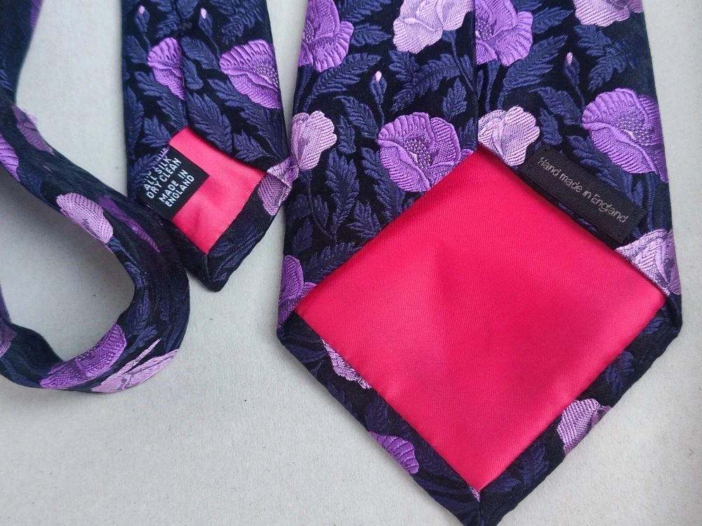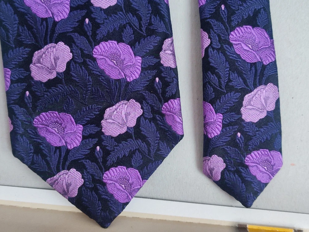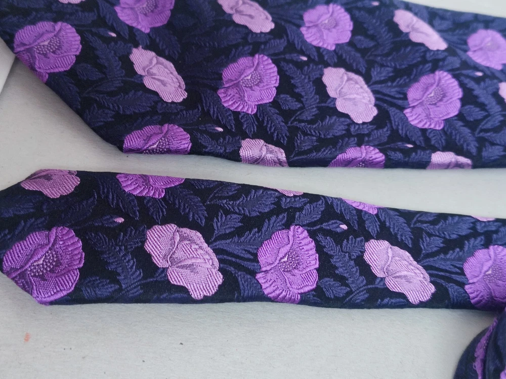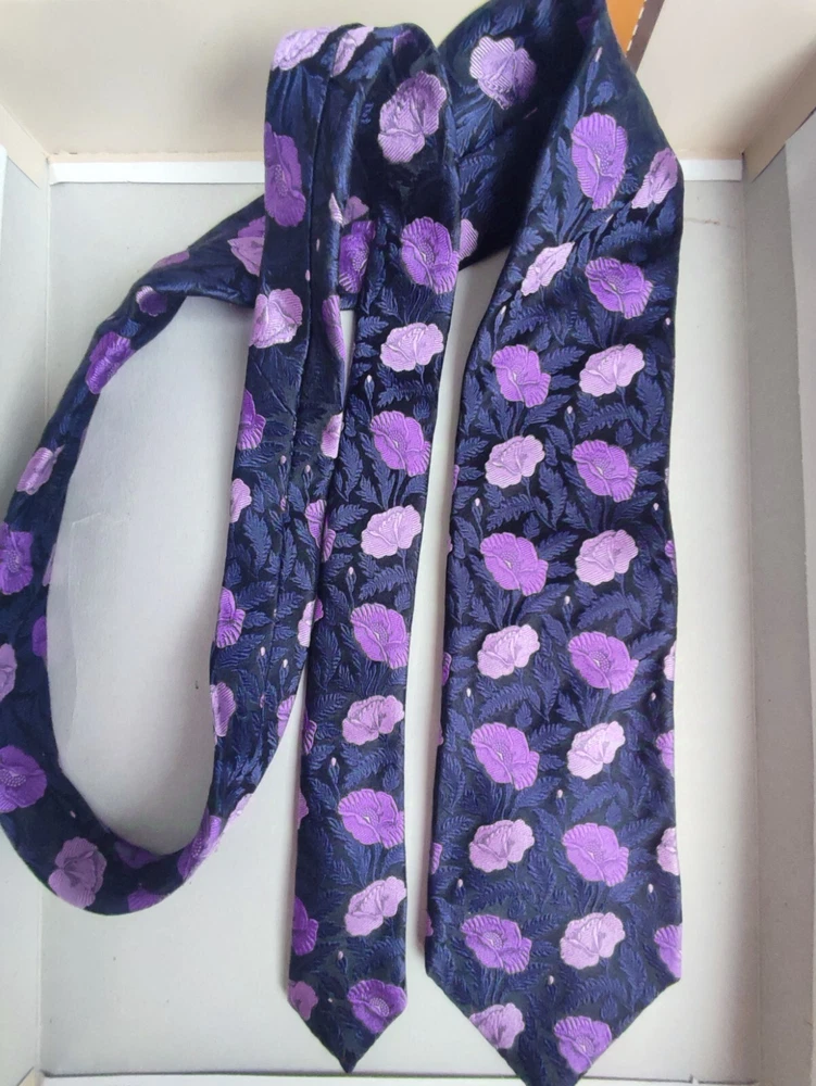 Hermes Silk Tie Purple Flower Print 8cm Wide Excellent Condition