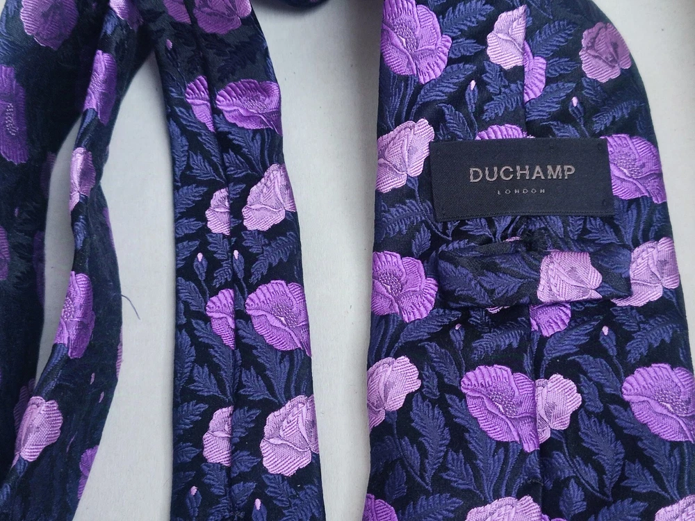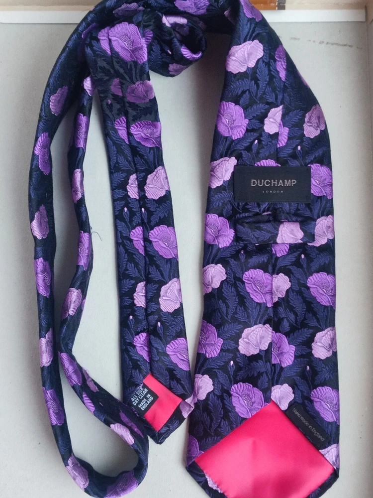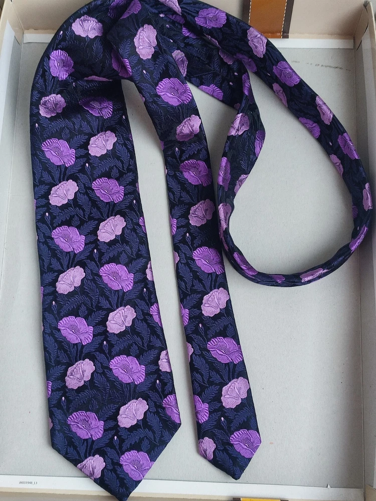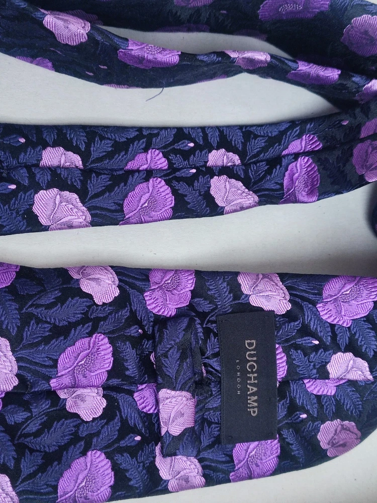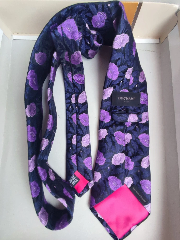 Hermes Silk Tie Purple Flower Print 8cm Wide Excellent Condition