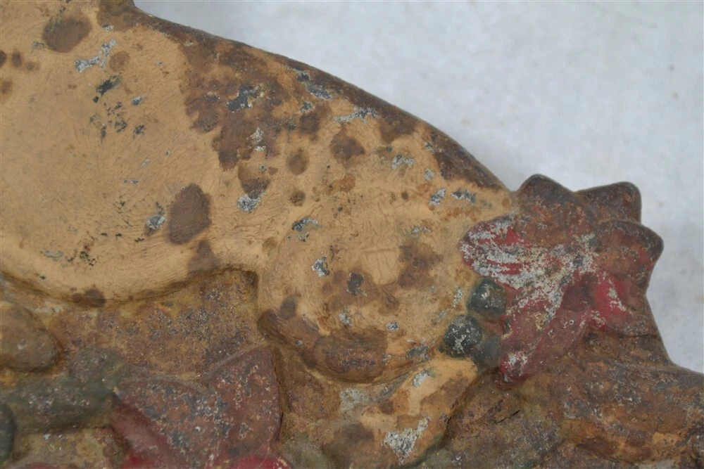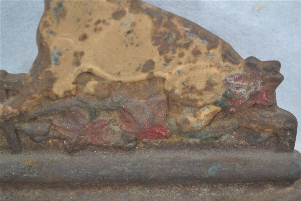 early antique cast iron doorstop flat setter dog w/flowers worn rare original old original rare cast iron doorstop 1. original not marked not reproduction 2. needs a little cleaning, I have not cleaned it, right out NH attic 3. I have been buying and selling or more than 50 years, I have never seen this form 4. original worn paint 5. some surface rust, will brush off 6. this will look a lot better when cleaned 7. long ear, long haired, setter type of dog approximate measurements 1. 9 in. long x 7.5 high x 1/2 in thick at body 2. base 9 in. long x 1.5 in. thick ground advantage or priority shipping and handling in US scroll down for larger photos You may be interested in our other eBay listings . I send a note at the end of the sale with payment information. Payment is expected within 2 days. We ship promptly within 1 day on receipt of payment. All US packages have tracking and are insured. International Buyers We ship international with United States Postal Services. USPS First Class postage and Flat Rate Priority Boxes or Envelopes can now be tracked to some countries . International packages over $100 ship priority or express. Contact us for more information. Import duties, taxes and charges are not included in the item price or shipping charges. These charges are the buyer’s responsibility. Please check with your country’s customs office to determine what these additional costs will be prior to bidding/buying.” . Powered by SixBit's eCommerce Solution