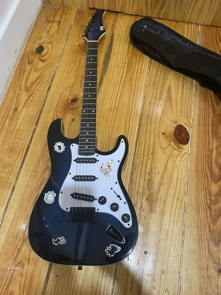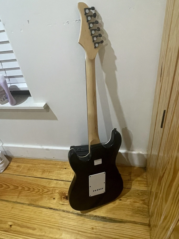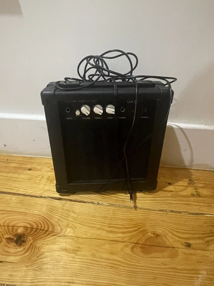 Used only 3 times before I stopped using it, it is now a waste of space and I do not need it anymore. The guitar itself is in very good condition and not damaged at all. AMP works well but if you really want that electric guitarist type of sound I suggest you buy another one.