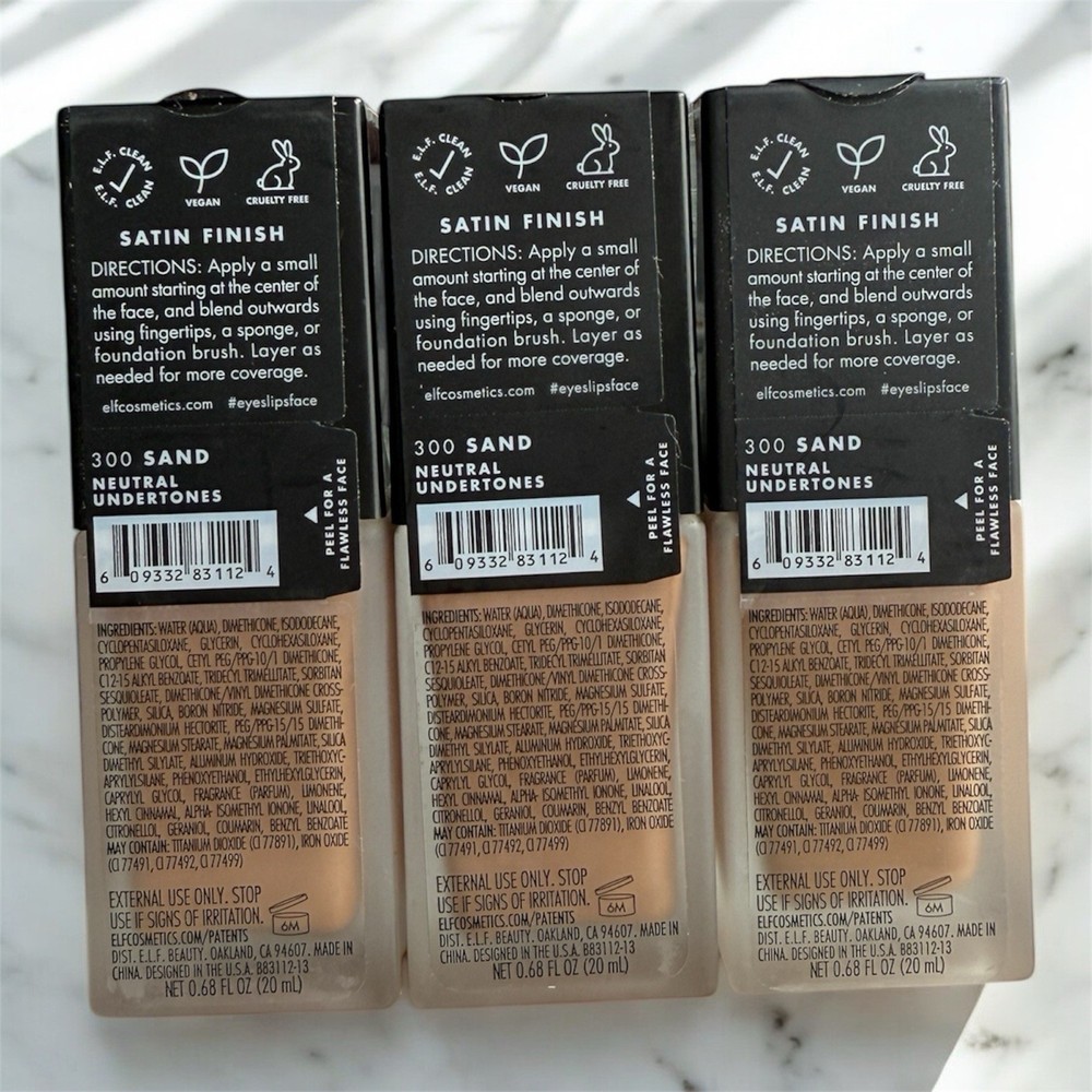 elf Flawless Satin Foundation in 300 Sand 3-Pack 0.68 oz each