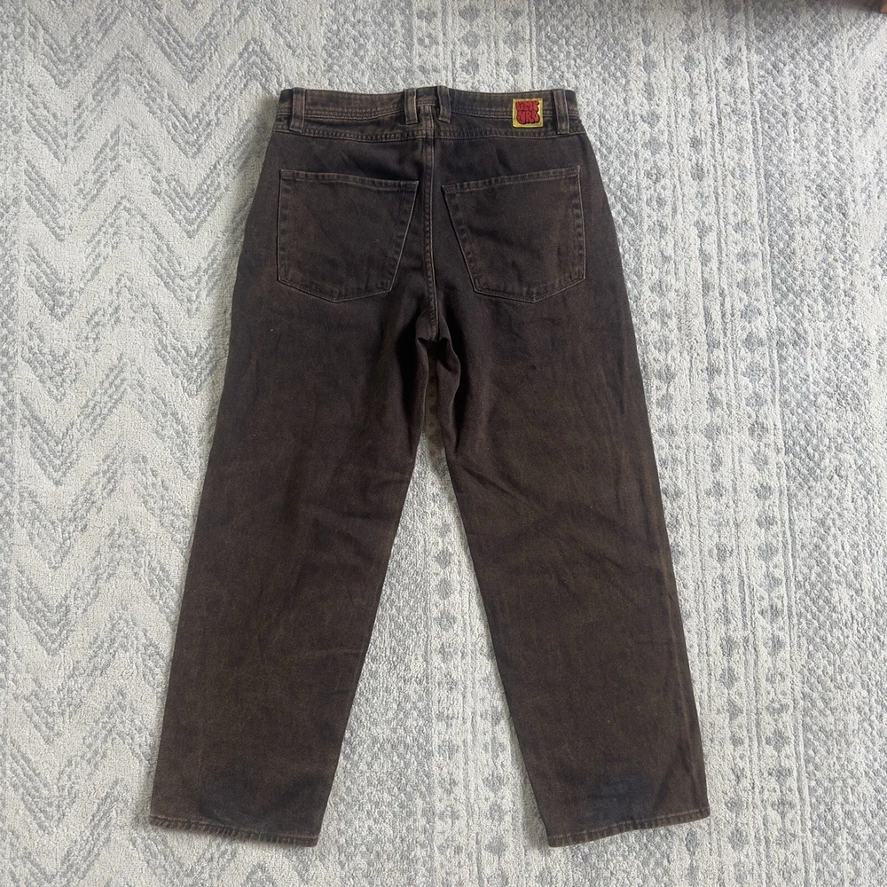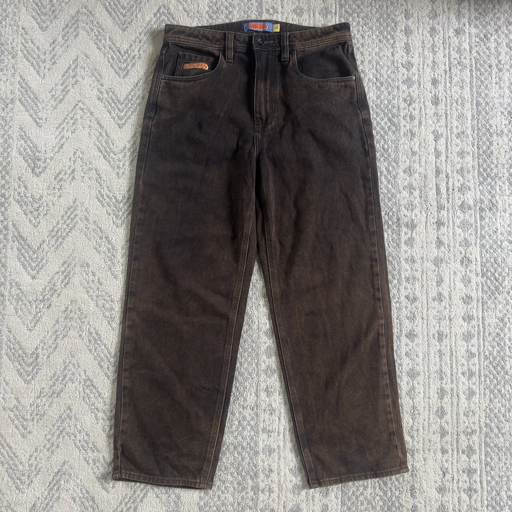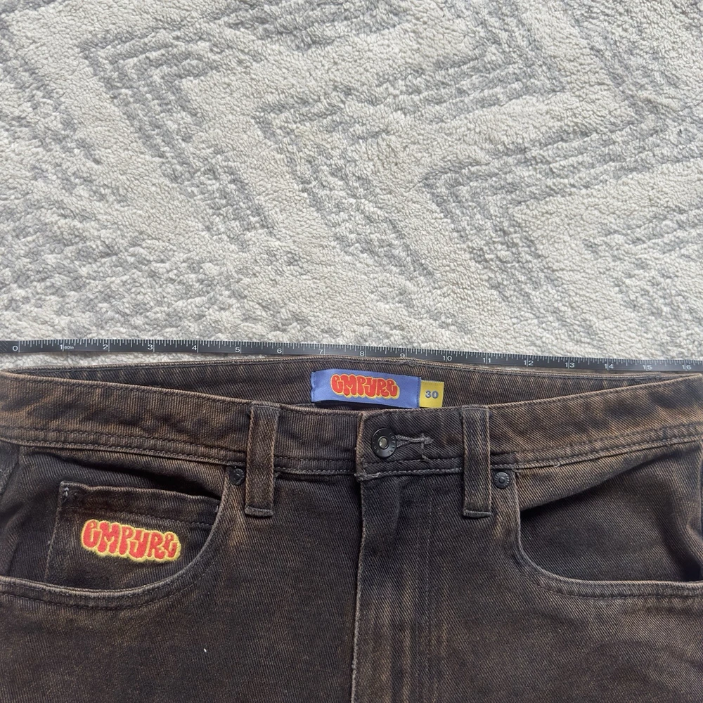 Stretched to a 32 but probably can fit 30 Approximate measurements Waist 32 Rise 12 Inseam 27 Length 37