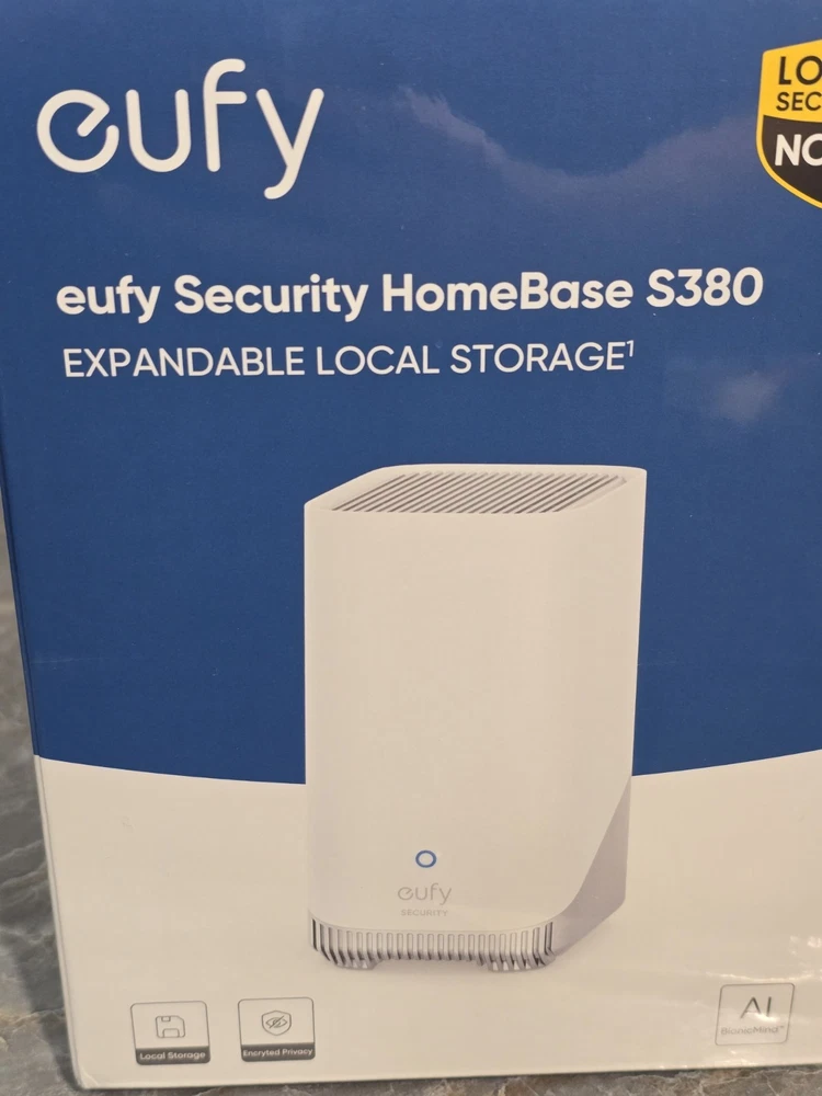 Brand new sealed box eufy Security HomeBase S380 (HomeBase 3),eufy Edge Security Center, Local Expandable Storage up to 16TB, eufy Security Product Compatibility, Advanced Encryption,2.4 GHz Wi-Fi, No Monthly Fee Included: • Homebase S3 (S380) • Power adapter • Network cable • Manual • Reset pin • Screws for hard drive (hard drive sold separately) All in box Ships with usps ground adv. Final sale