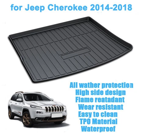 For Car Years: Jeep Cherokee 2014-2018 Modified Item: No Type: Cargo Liner Material: TPO Placement on Vehicle: Cargo/Trunk Country/Region of Manufacture: China Fitment Type: Direct Replacement Feature3: All weather safe and reliable protection Feature1: Liners raised and strengthened lip for protects carpet floor Manufacturer Part Number: Does Not Apply Number of Pieces: 1 Color: Black Brand: Unbranded Feature2: Easy to clean and waterproof