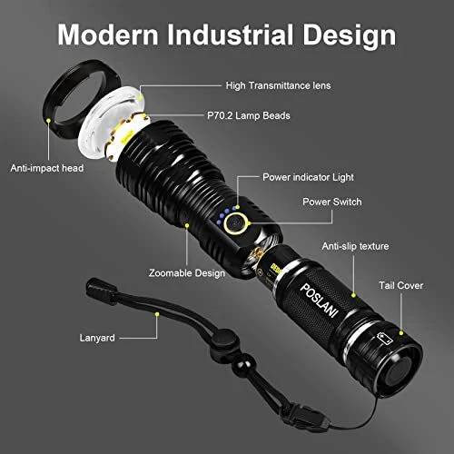 Return Policy Fast Delivery Trusted seller flashlights LED high lumens Rechargeable, Extremely Bright 50000 lumens Flashlight, IPX67 Water Resistant, 5 Light Modes, zoomable Tactical Flashlight for Emergency Camping Gift Product Description [LED Flashlight 50000 Lumens] This LED rechargeable flashlights high lumens is equipped with an advanced XHP70.2 LED chip, which is stable and super bright, 10 times brighter than ordinary light bulbs. Light up an entire room with ease and a maximum beam distance of up to 2000 ft . The flashlight is made of high quality aviation aluminum alloy and the surface coating has been specially oxidized to make it wear-resistant and anti-drop. [Type-C Rechargeable & POWER INDICATOR]This rechargeable flashlights can provide up to 12 hours of runtime, with upgraded overcharge protection, it can be charged by TYPE-C. cable(included). The flash light will stop charging when it fully charged, so we don't need worry about the safety when we forget the flashlight is charging. The power indicator above the flashlight helps you clearly understand the flashlight power (25%, 50%, 75%, 100%). [IP67 WATER Resistant & Widely Portable Camping Led Lamp] IP67 water Resistant tactical flashlights is made of aviation grade aluminum alloy,Can be used for camping, hiking, fishing, running, dog walking, repairing, power outage, emergency, ed search and home use. It's a good tool for home, night travel and outdoor activities. [Adjustable Focus & 5 Light Modes] This high lumen flashlight has 5 lighting modes: high light, middle light, low light, flash and sos. You can turn it off by long pressing the buttons for 3 seconds in any mode. Depending on your needs, you can extend the head of the flashlight to adjust the focus, the spot light for long-distance observation and the search light for large-area illumination. [Full Flashlight Kit] What you get: 1 x flashlights high lumens, 2*power resource, 1xflashlight holster,1 x Type-C charge cable, 1 x user manual and gift box.We have carefully checked all flashlight rechargeable before shipment and ensured that the products are working properly Most importantly, we are always available for customer service, if you have any questions, please feel free to contact us. Warmly tips:Don't worry if touch hot under the highest brightness for a while. This is a normal phenomenon of ultra-high lumens. We recommend adjusted to the low mode at this moment. Shipping Returns Payment Shipping Shipping is FREE to all addresses other than APO/PO boxes in the lower 48 states. All our stock ships from US-based warehouses. Shipped via USPS or UPS (depending on location and package weight) Unless stated otherwise, all orders will ship within 24-72 hours of your payment being processed. Check our feedback to see the great reviews of FAST shipping we offer. Returns Seller does not accept returns Payment We currently accept payment via eBay managed payments only. Once payment is cleared, we will dispatch your shipment within 1-3 business days. Please refer to the "Shipping" tab for more information regarding shipping speed to your destination.