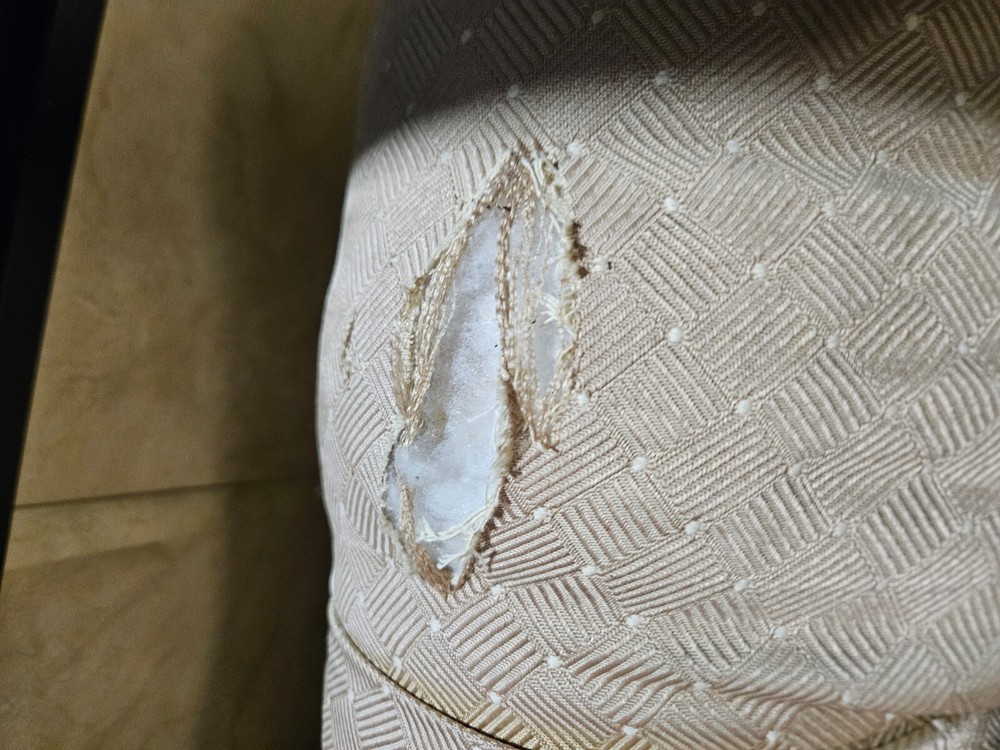 Used flexsteel 68 in sofa bed has tear on top see pictures. Can help with setting up shipping.