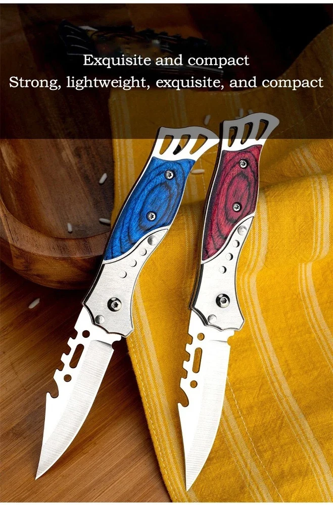 folding knife pocket knife Spring open Assist survival hunting tactical knife Specifications Hign-concerned Chemical none Spring Force no Lock no Sharp Blade YES Full Length 15.5cm Handle Length 9cm Blade Angle ≤60° Type Folding Blade Knife Origin Mainland China Blade Length 5.9cm Handle Material wood Brand Name LANG DUN Blade Material STAINLESS STEEL DIY Supplies Woodworking Specifications: Material: High-grade Stainless Steel Design and Style: Tactical, Survival-Oriented Usage and Purpose: Outdoor Camping, Hiking, Adventure, Self Defense, EDC Typical Adaptive Scenario: Wilderness Survival, Emergency Rescue Shape and Size: Compact, Foldable, Portable Performance and Property: Durable, Sharp, Corrosion-Resistant.