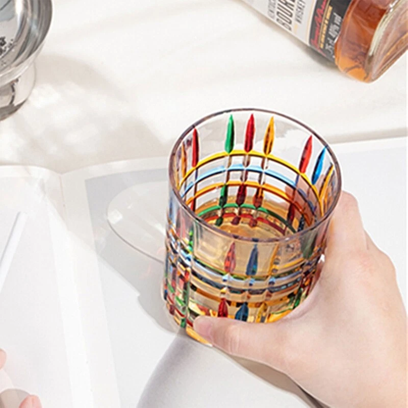 Features: Made of high quality glass material, with the enchanting colorful patterns. Impress your guests with these Modern Fashion glasses. Multifunctional cup for coffee, tea, scented tea, ice cream, cocktail, It is recommended to use in daily bars, KTVs, homes, hotels, teahouses, clubs, cafes or offices. Unique wine glass holder gifts for birthdays, anniversaries, Christmas, retirement, engagements, weddings. Specifications: Material: Glass Size: Detail Sizes in the Pictures Package Includes: 1x Hand-painted Line Woven Crystal Glass note: Please allow 1-2cm errors due to manual measurement. Due to the difference between different monitors, the picture may not reflect the actual color of the item.