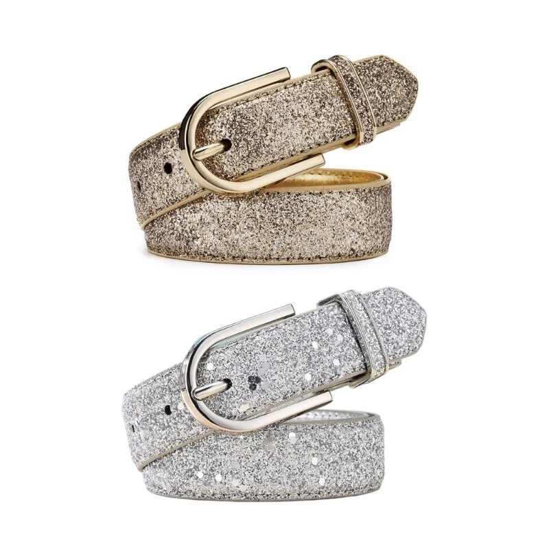for Creative Waist Belt Shinning Sequins Belt for Women Men Jeans Formal Dress Features: this women's sequins belt high faux leather, the material and definite process makes any item reliable, comfortable and durable. Sequins this is gorgeous sequins belts with vintage adjustable buckle, which are very and eye-catching, exquisite and beautiful, accessory to the cowgirl look. great choice for all cowgirls. Occasion: women's sequins belts are for formal or casual wear in any season and for all occasions and are also for everyday wear. it is an great family, lover and for every holiday, such as birthday party, valentine's day, halloween, thanksgiving, christmas, Fashion waist belt can be with your any clothing.It can highlight your and sexy body, make you looks more confident and in the crowd. Specifications: PU Leather Size: Approx. 105cm/ 41.33in Color: Golden, Silver Package Includes: 1pc Shinning Sequins Waist Belt note: 1. Please allow 1-2cm errors due to manual measurement, make sure that you do not mind before you order. 2. Due to the difference between different monitors, the picture may not reflect the actual color of the item.